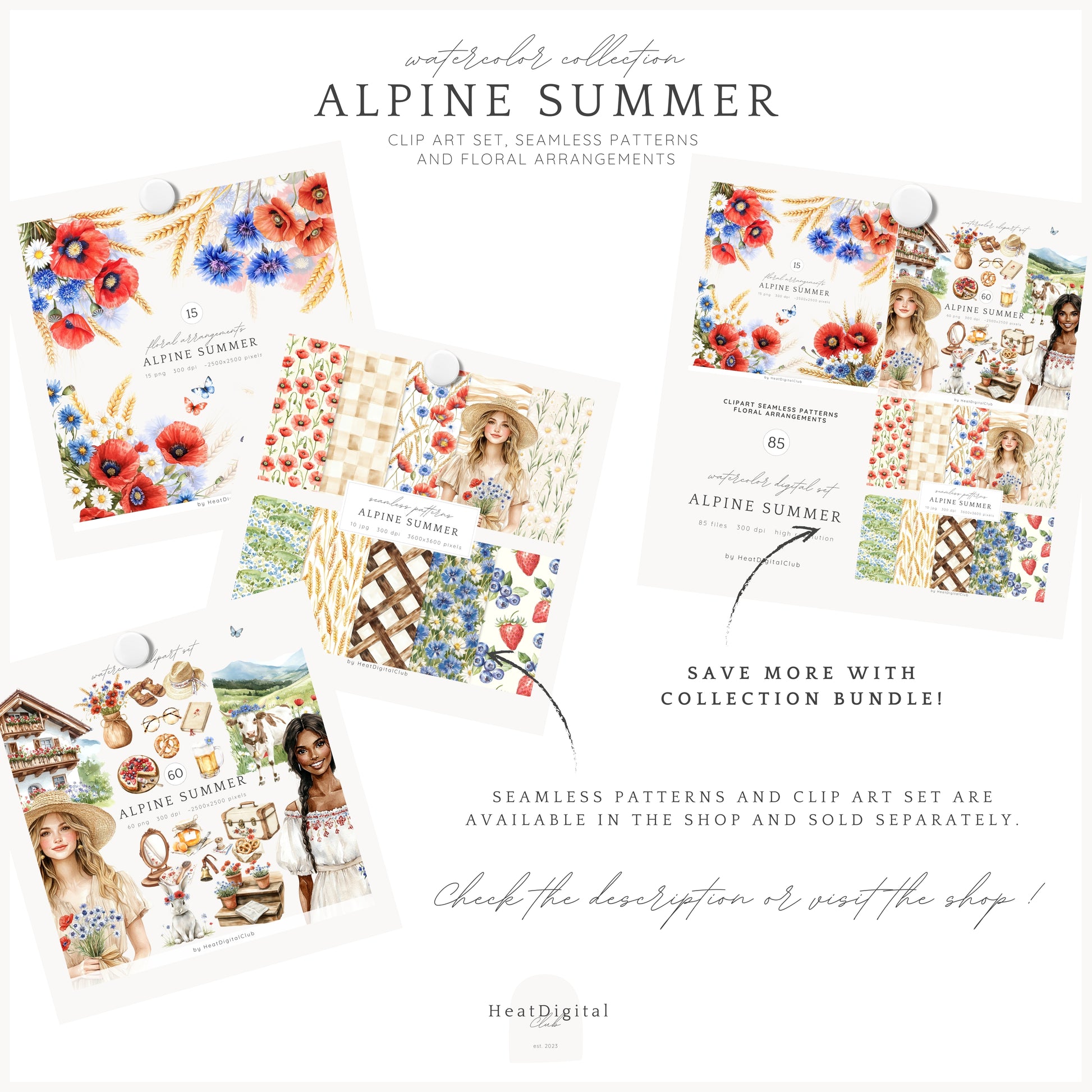 Capture delicate beauty with the Alpine Summer floral compositions — watercolor bouquets perfect for soft, romantic projects.
