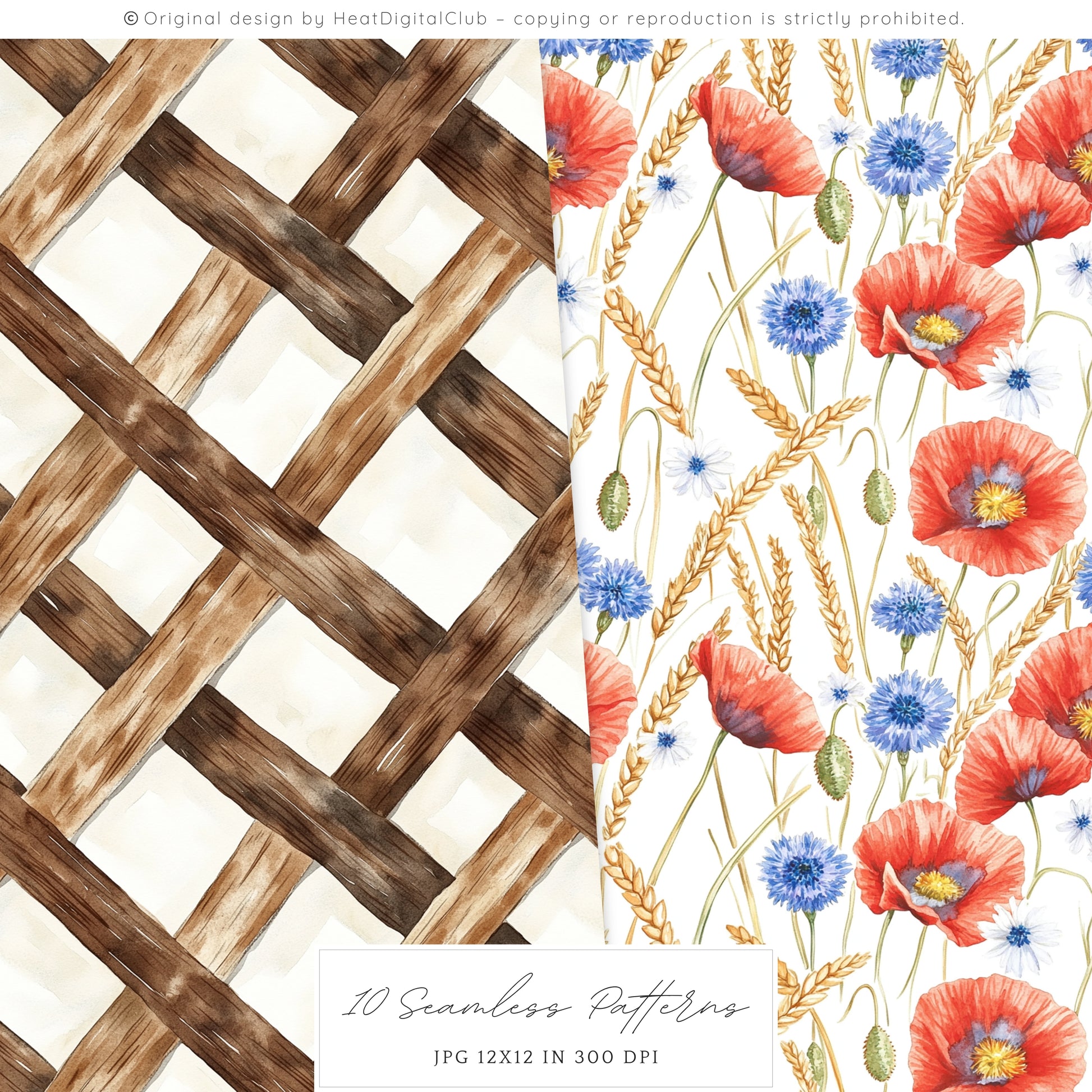 Alpine Summer - Seamless Patterns, Countryside Wildflower, Poppies | 10 JPEG
