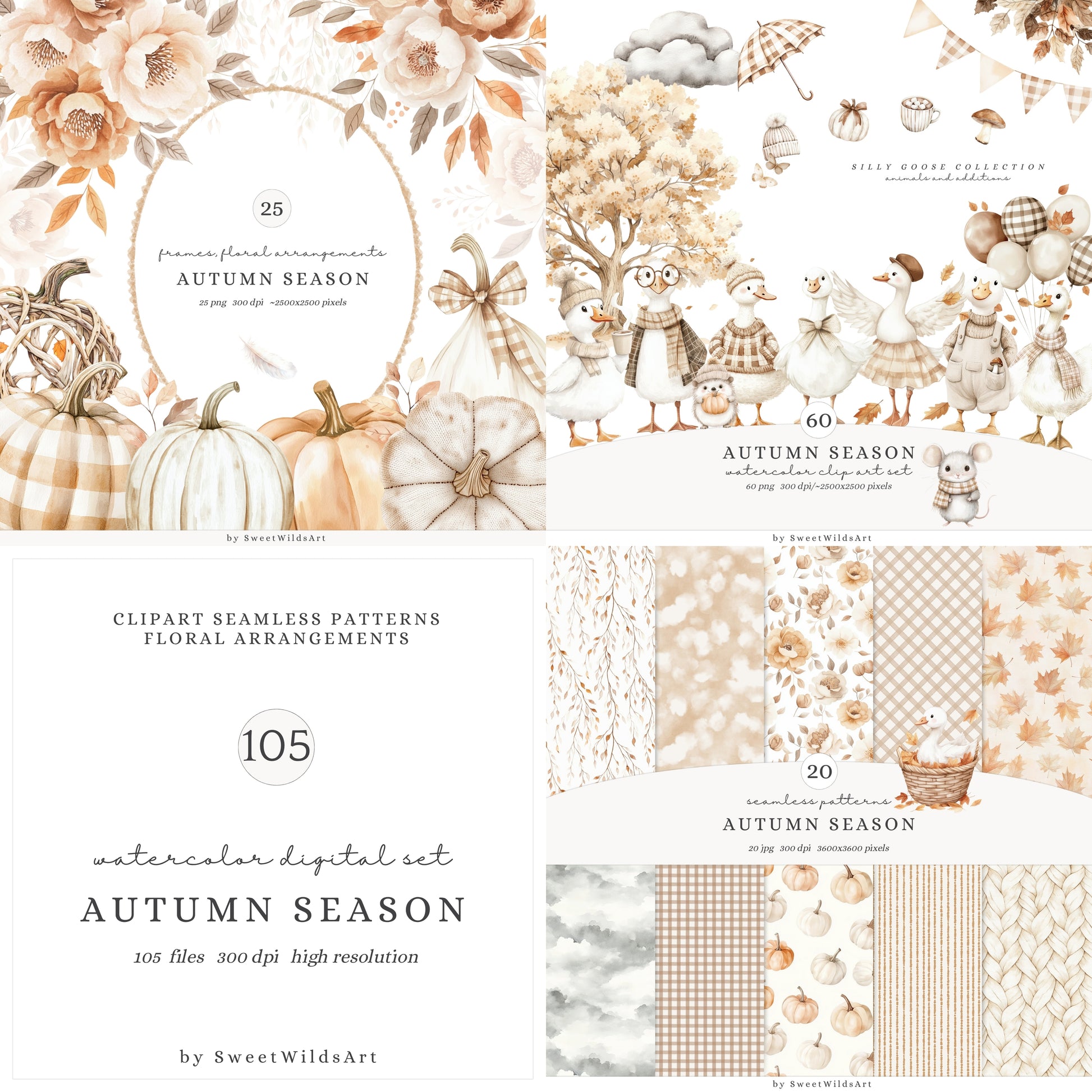 Autumn Season - Collection Bundle, Cute Fall Silly Goose, Baby Shower | 105 PNG/JPEG