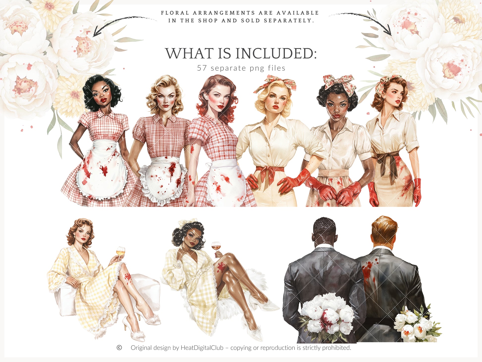 Bad Housewife - Retro Halloween Clipart, Housewife, Domestic Horror | 57 PNG