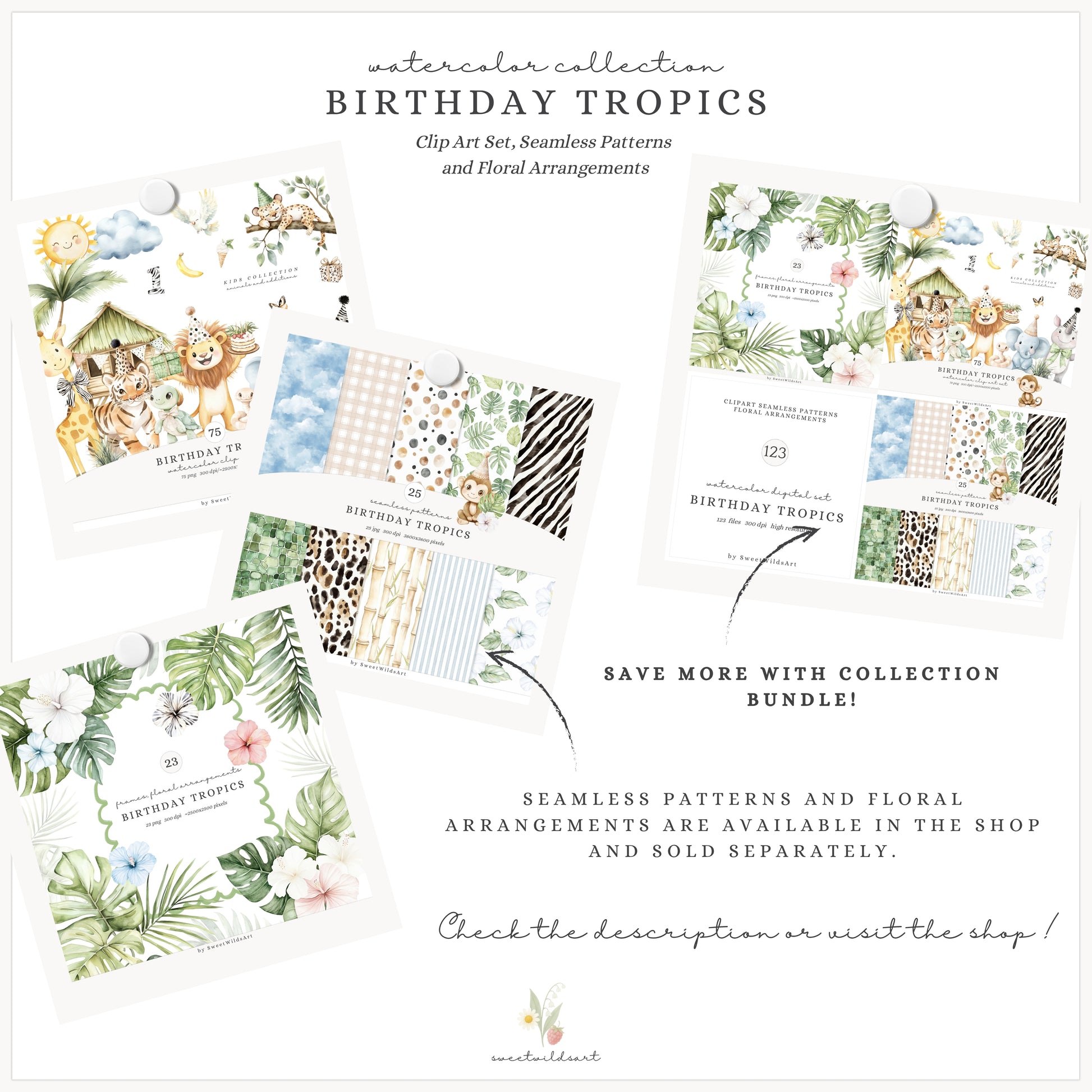 Birthday Tropics - Safari Seamless Patterns, Cute Jungle, Animal | 25 JPEG