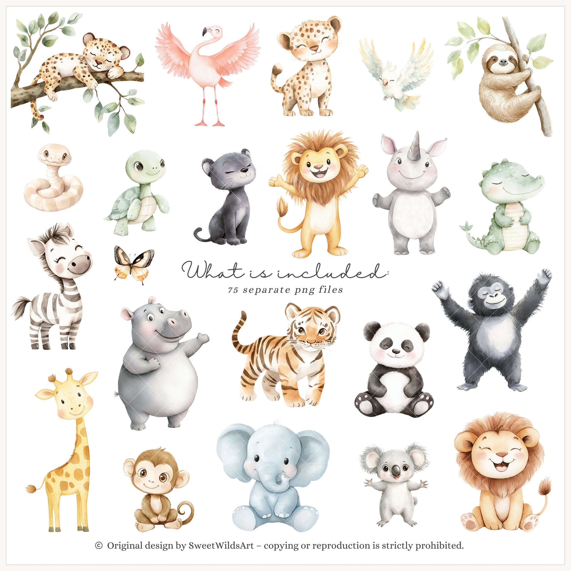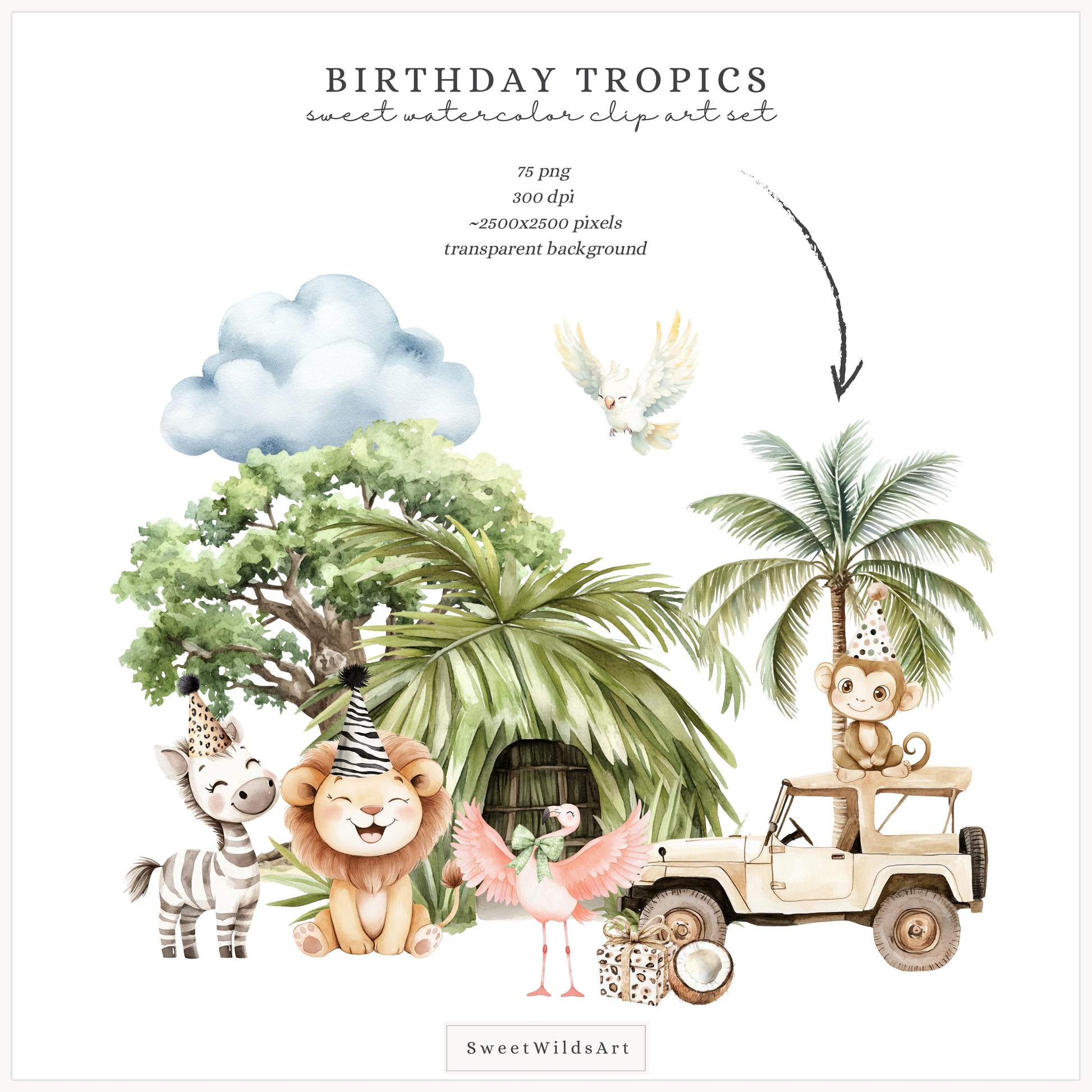 Birthday Tropics - Jungle Clipart, Baby Animals, Tropical, Safari Nursery | 75 PNG