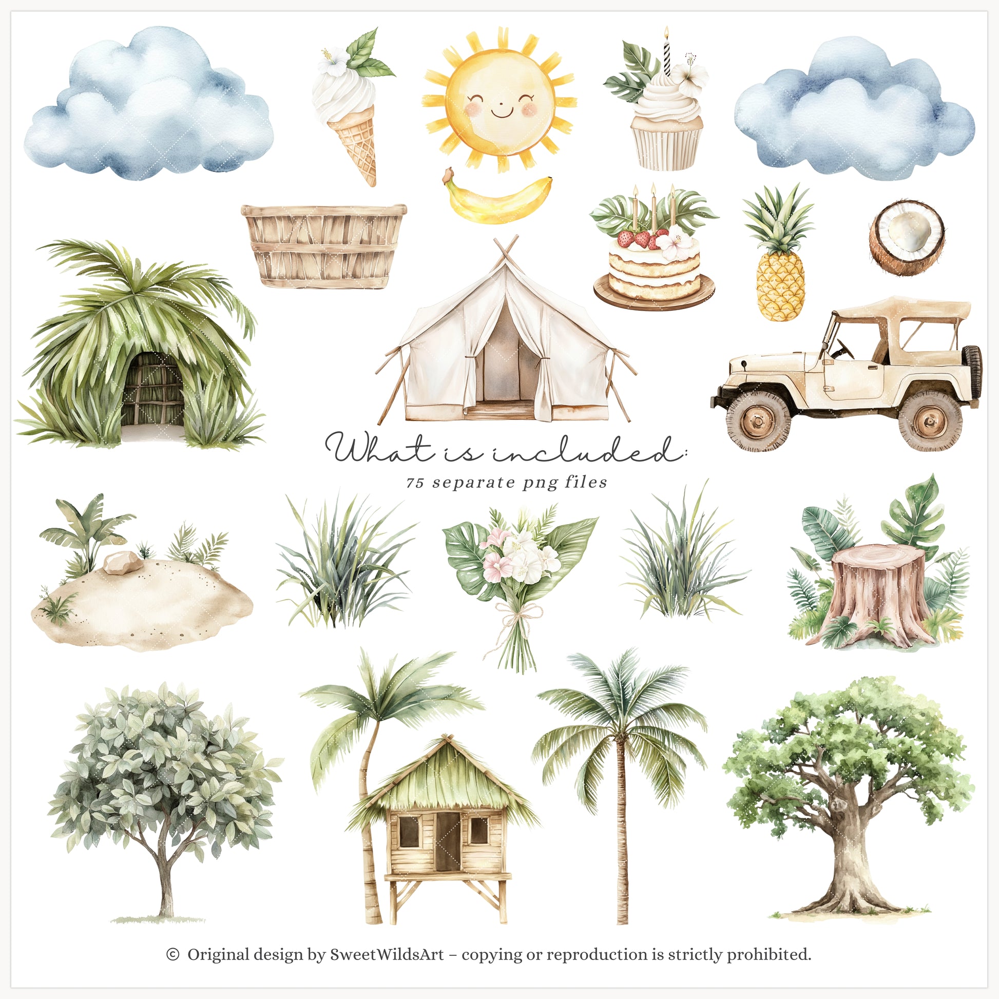 Bring your story to life with the Birthday Tropics clipart set — a curated selection of watercolor illustrations designed for creative freedom and visual charm. Perfect for everything from digital stickers to paper goods.