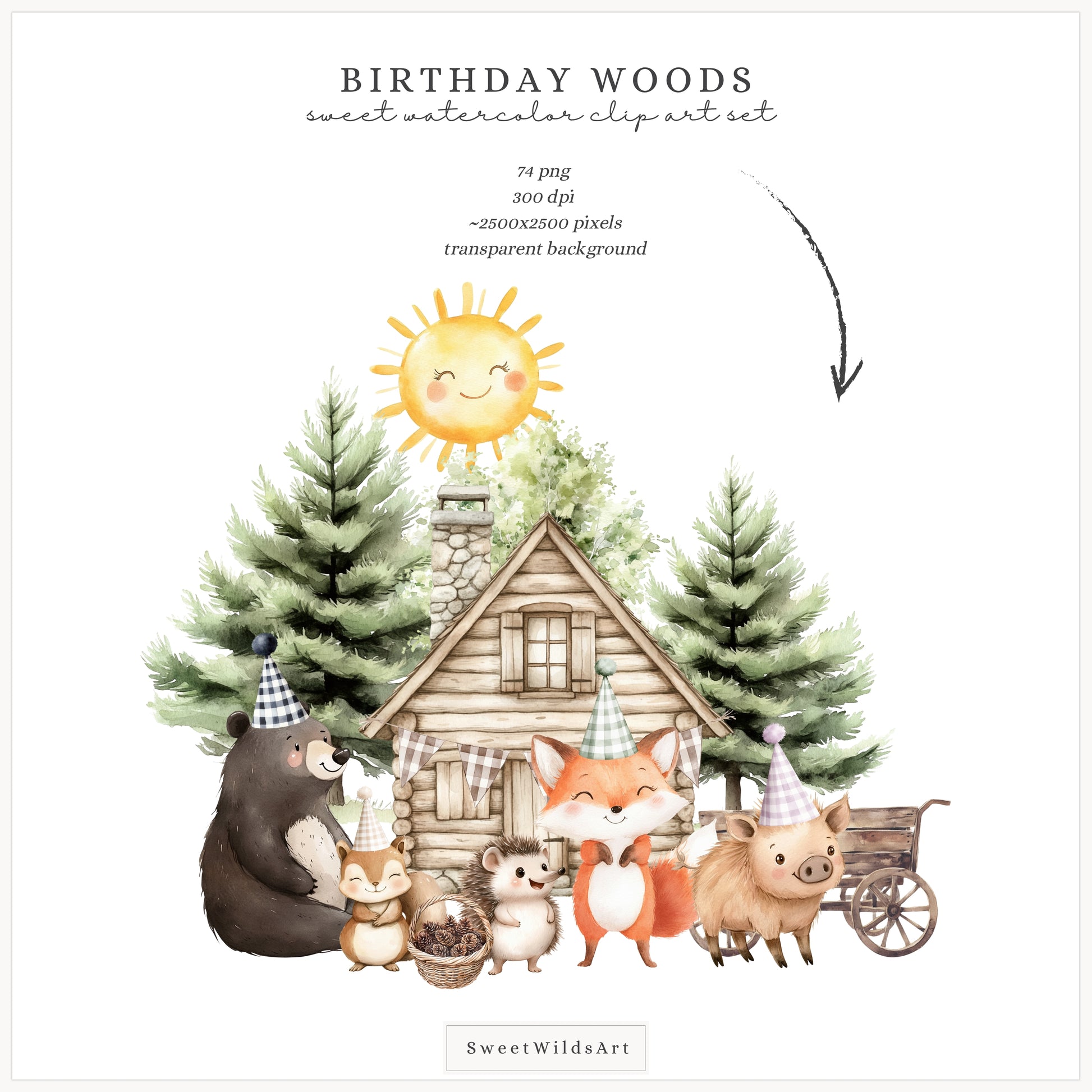 Bring your story to life with the Birthday Woods clipart set — a curated selection of watercolor illustrations designed for creative freedom and visual charm. Perfect for everything from digital stickers to paper goods.