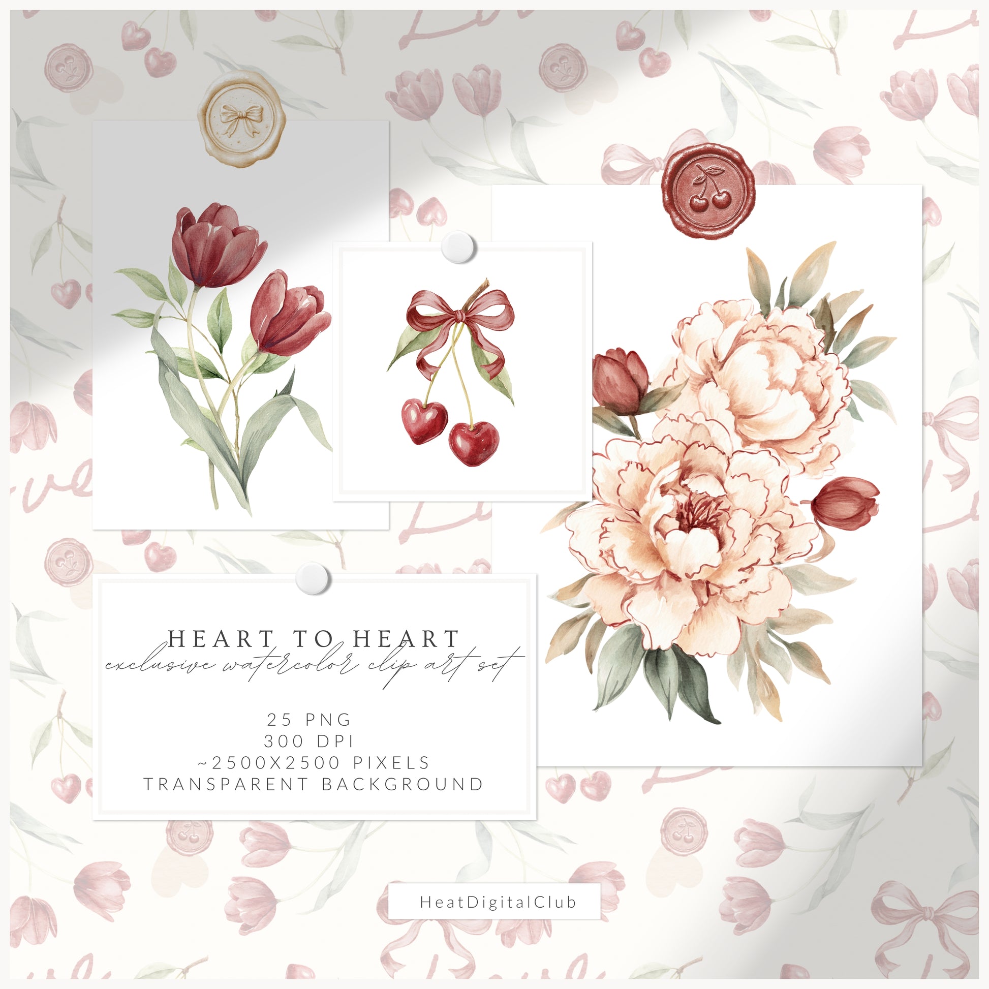 Cherry in Love - Valentine's Day Floral Arrangements Clipart, Valentine Peonies , Romantic | 25 PNG