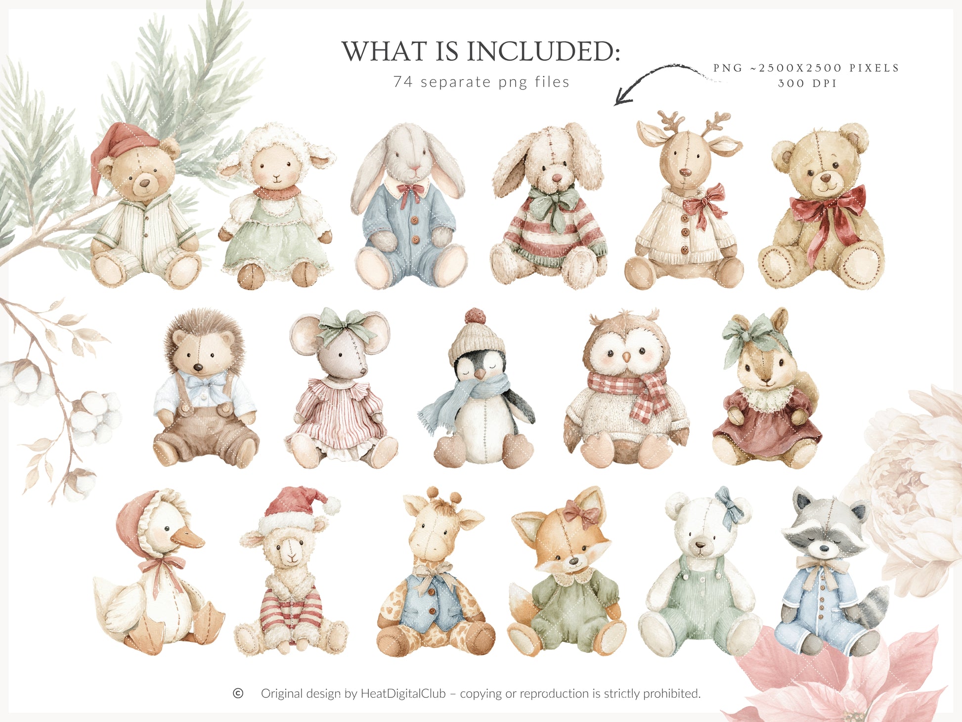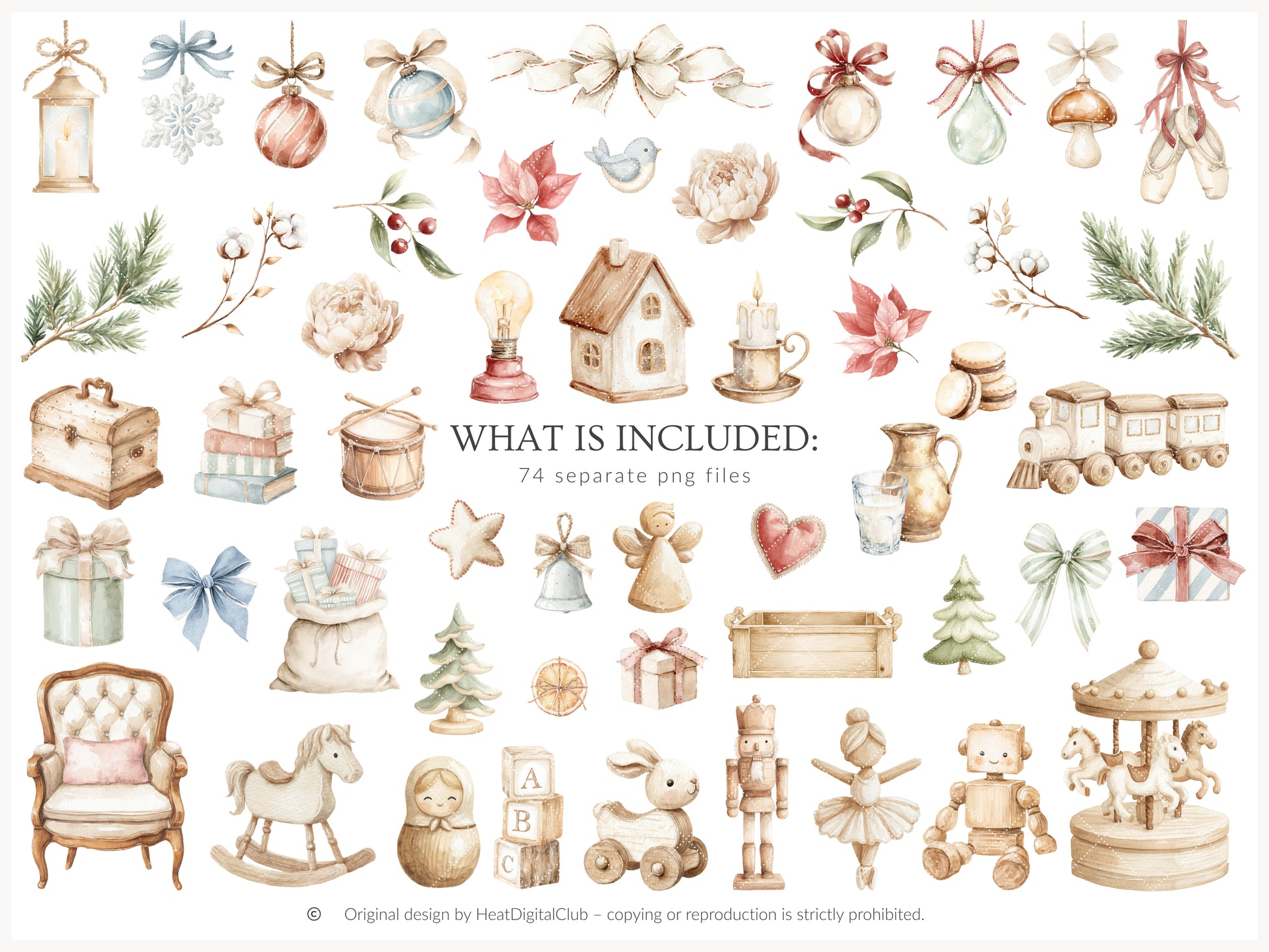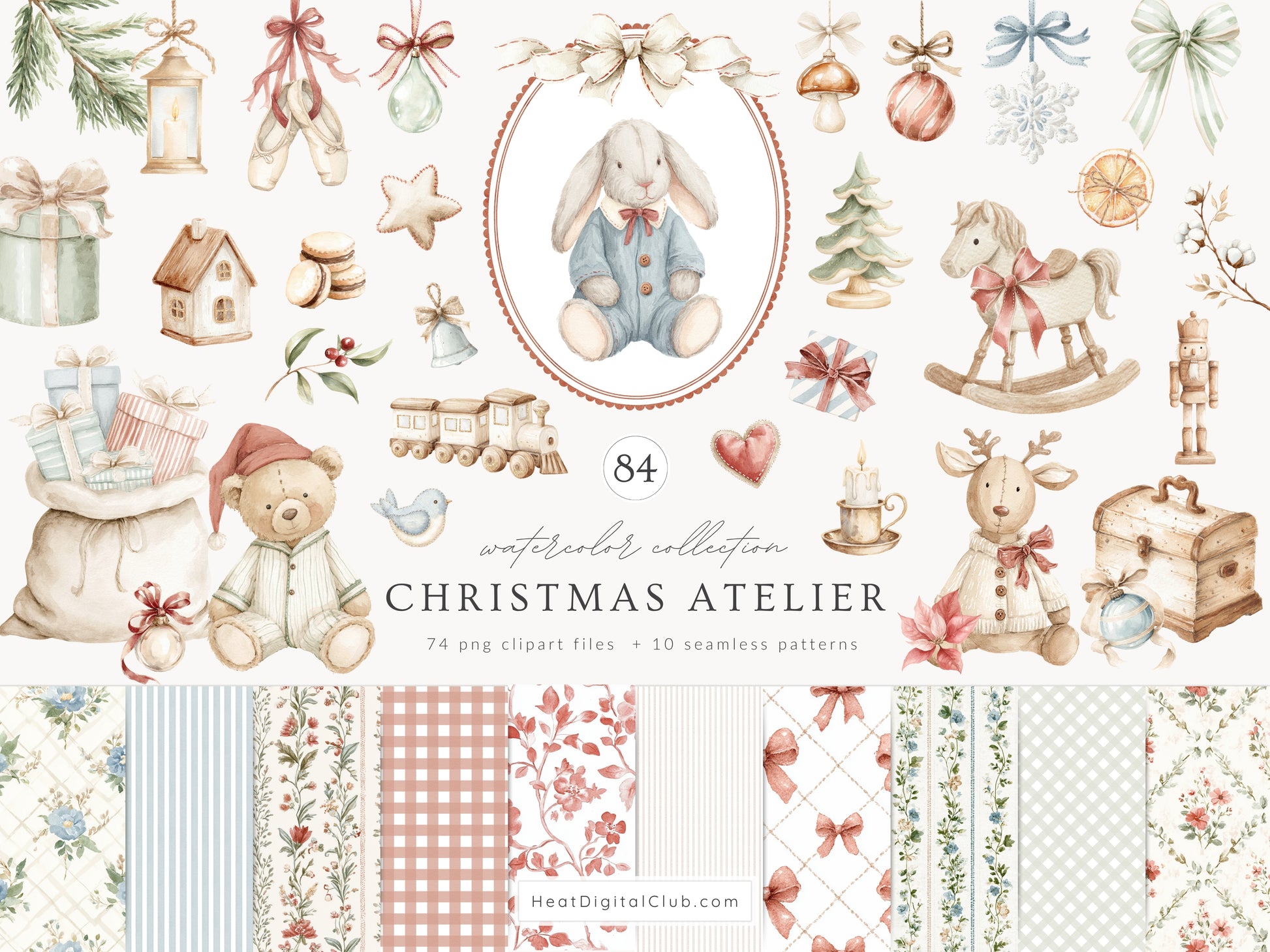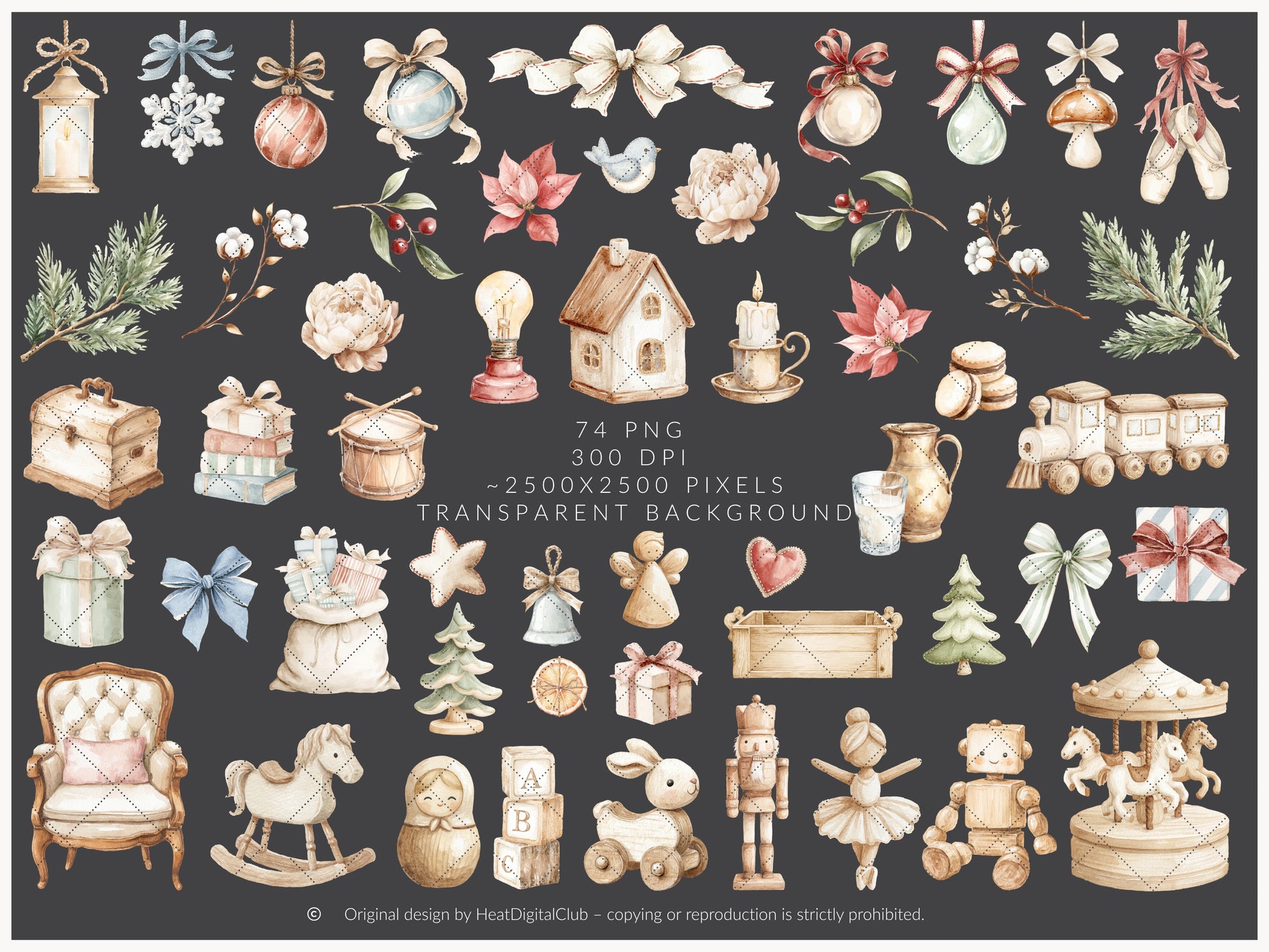 Christmas Atelier - Cute Vintage Holiday Toys Clipart, Winter Grandmillennial Nursery | 84 PNG/JPEG