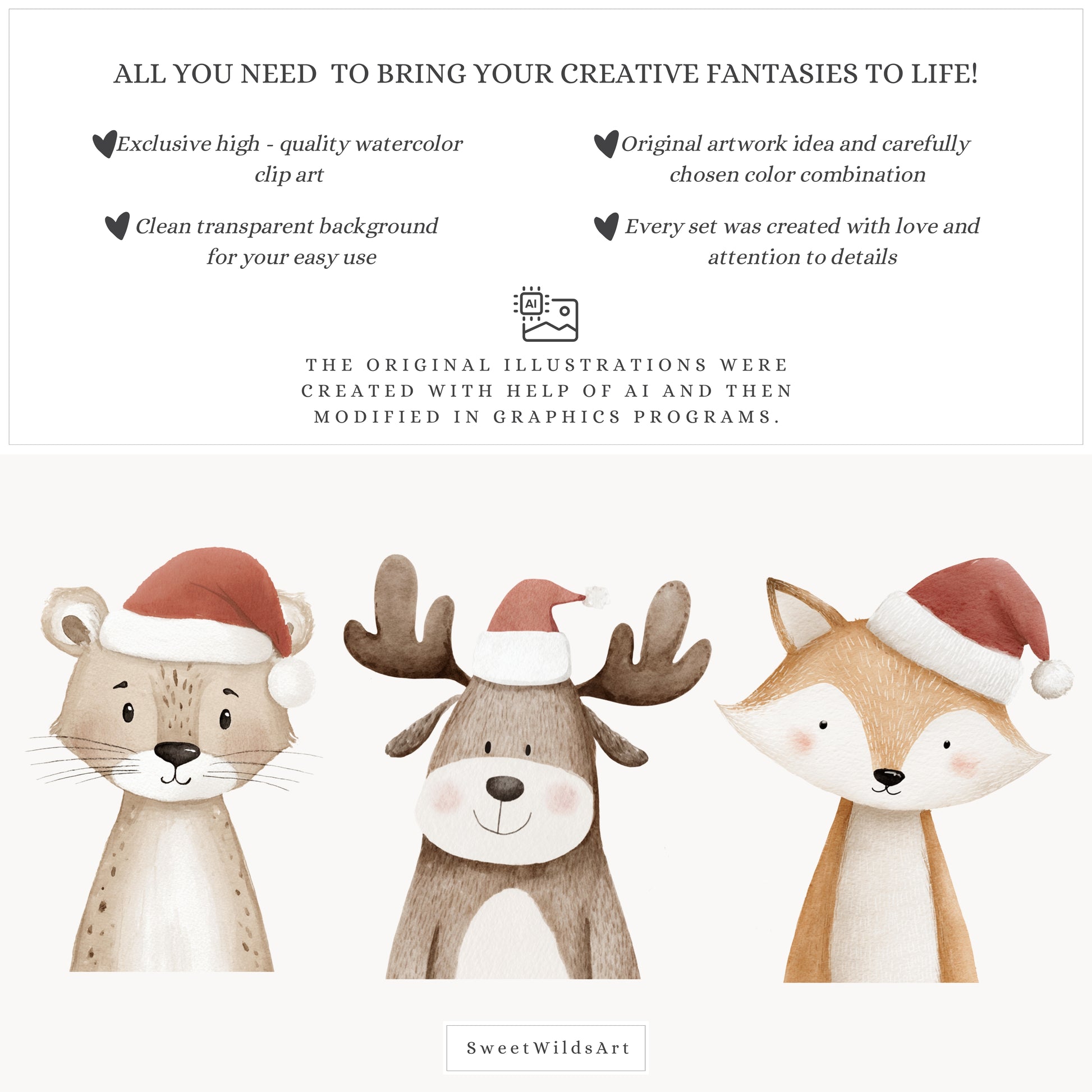 Christmas Portraits - Cute Animals, Baby Shower, Winter Nursery | 26 PNG