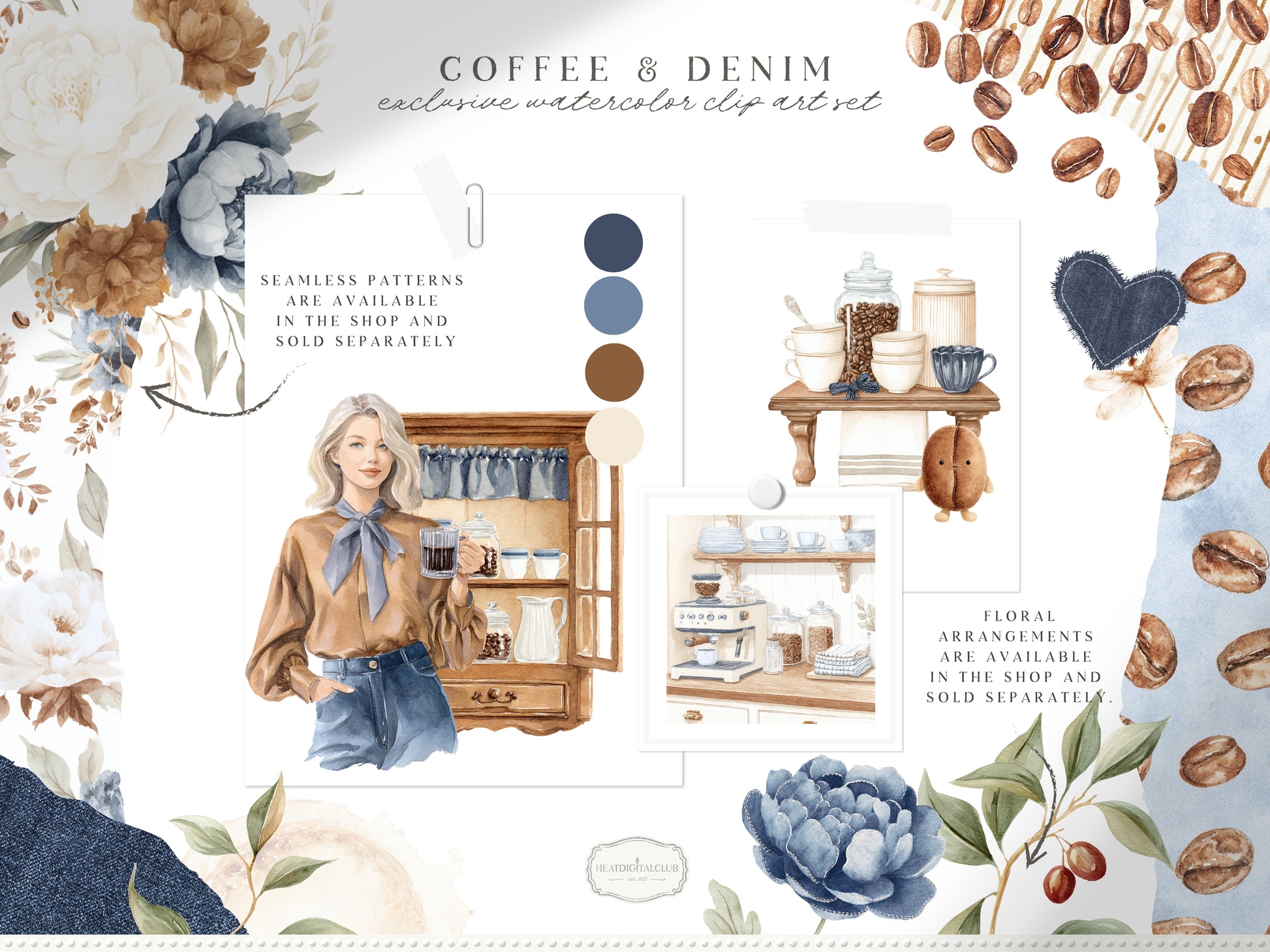 Coffee & Denim - Clipart Set Bundle, Denim Aesthetic, Cafe Decor , Cozy Lifestyle Cottagecore | 95 PNG/JPEG