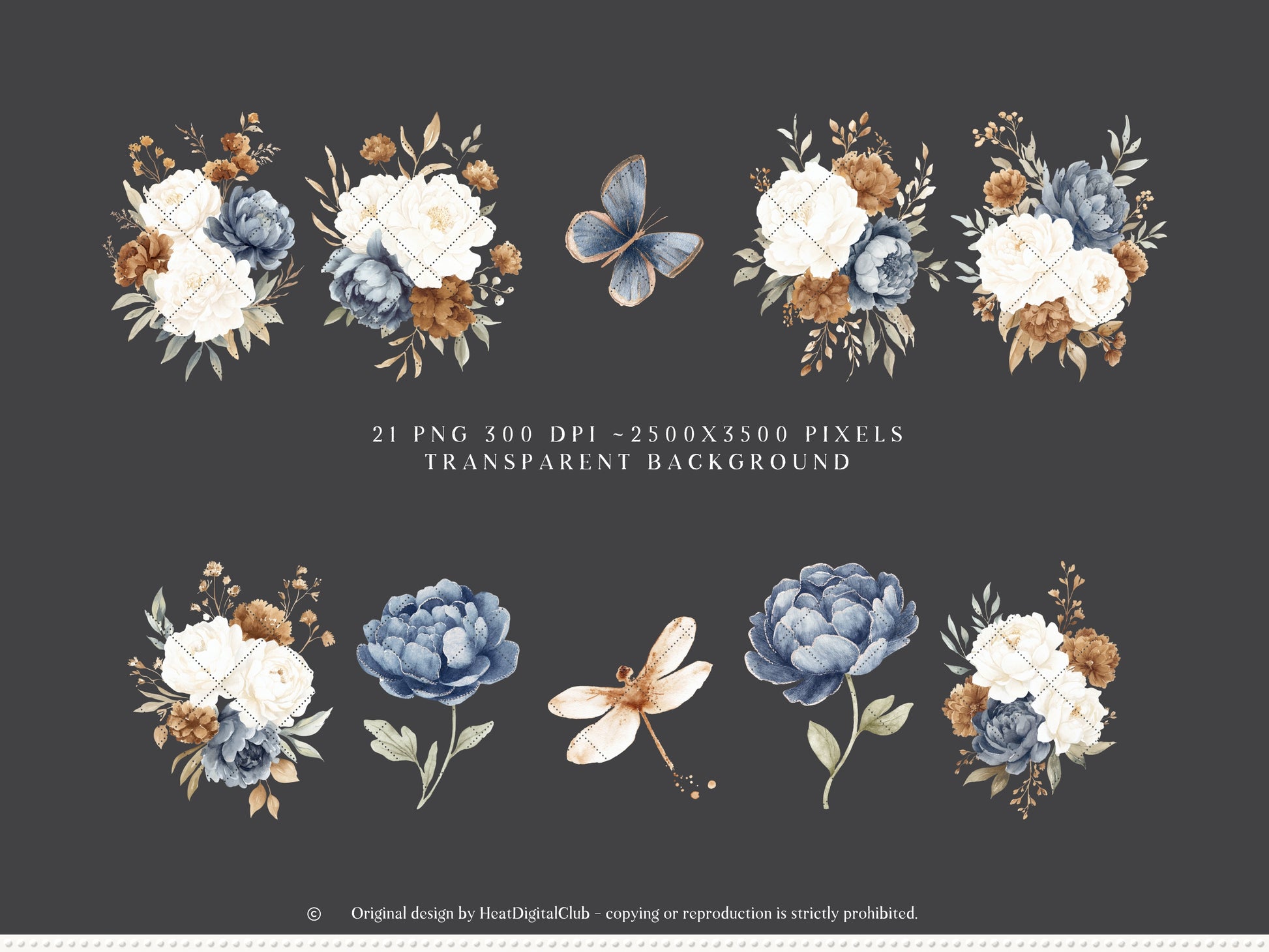• 21 PNG floral compositions, 300 DPI