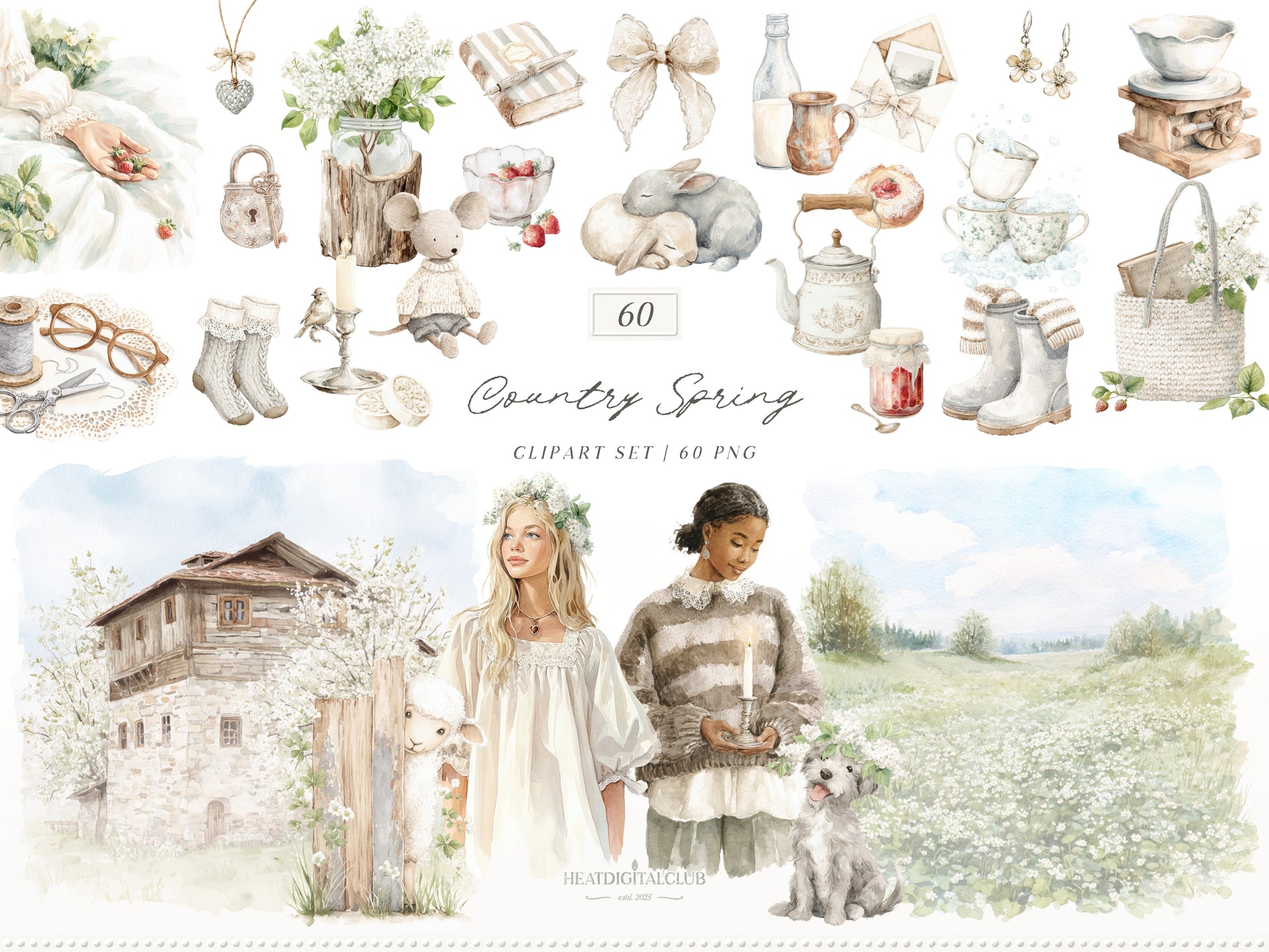 Bring your story to life with the Country Spring clipart set — a curated selection of watercolor illustrations designed for creative freedom and visual charm. Perfect for everything from digital stickers to paper goods.