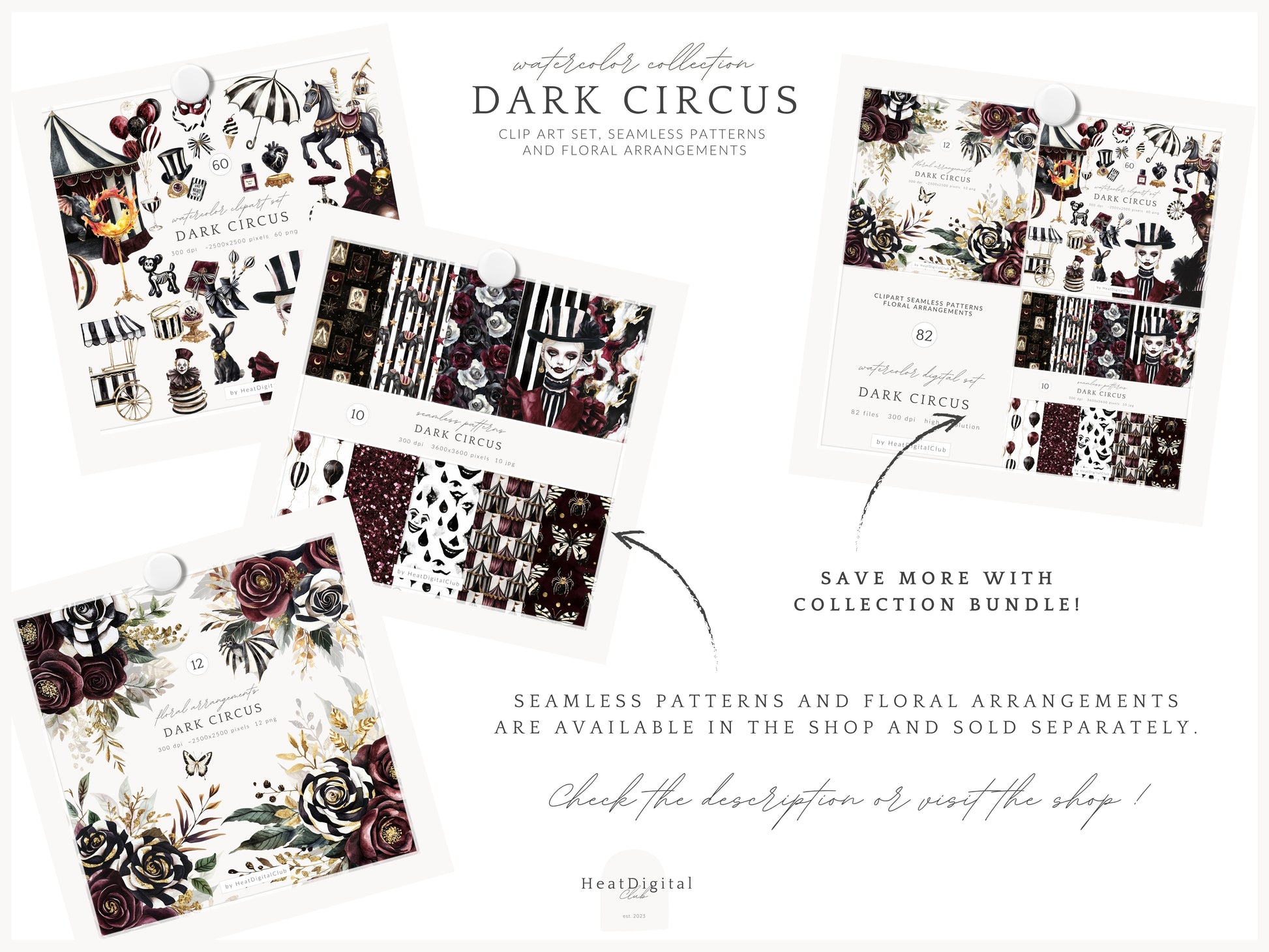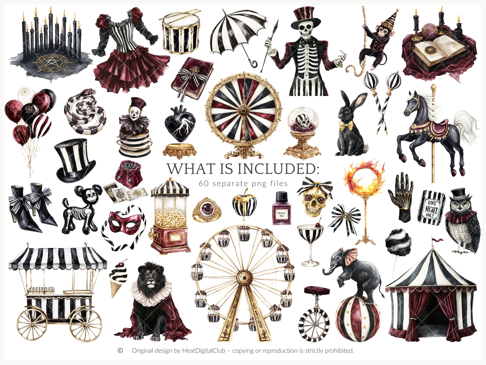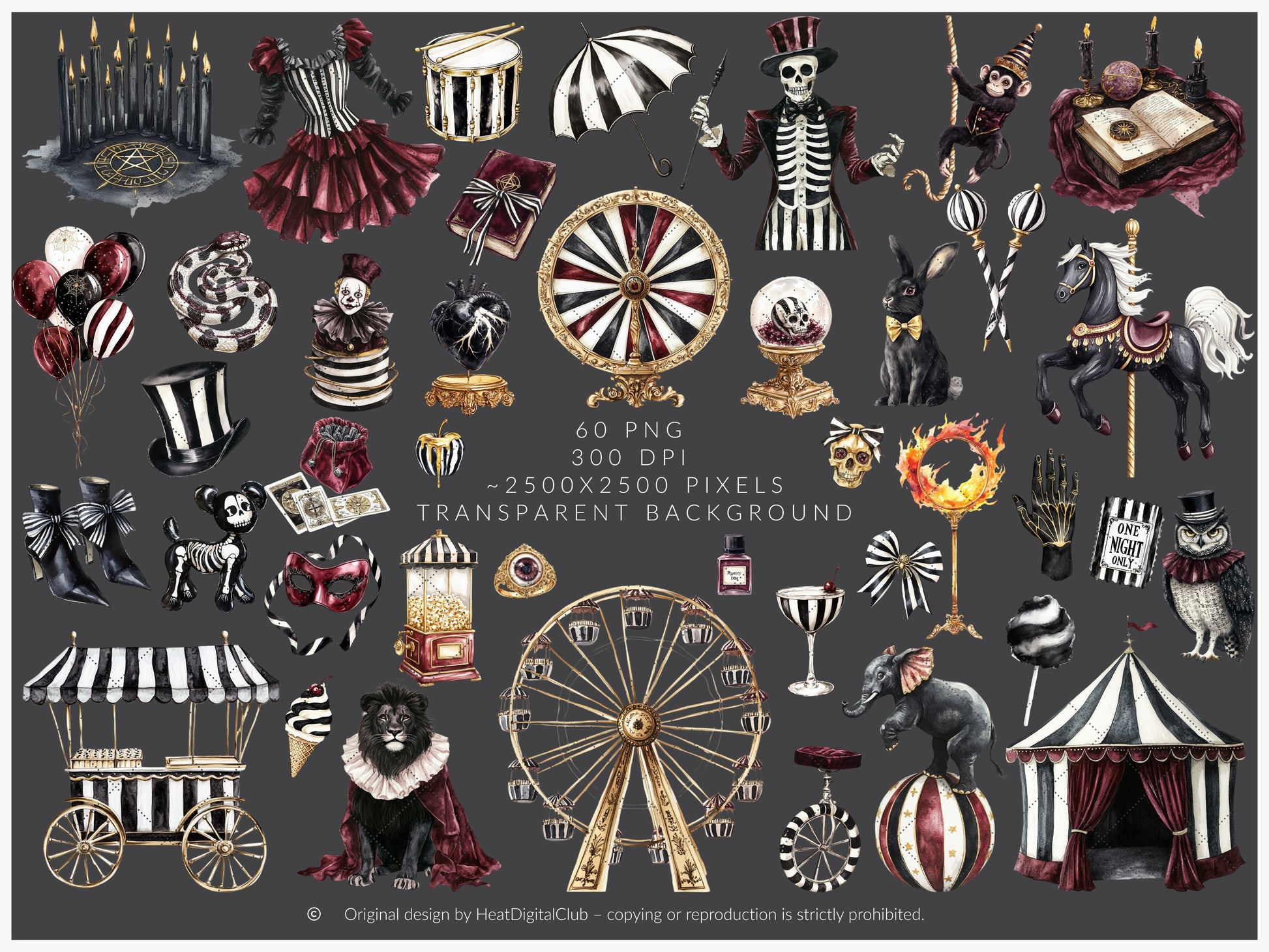 Dark Circus - Collection Bundle, Gothic Halloween, Vintage Carnival | 82 PNG/JPEG