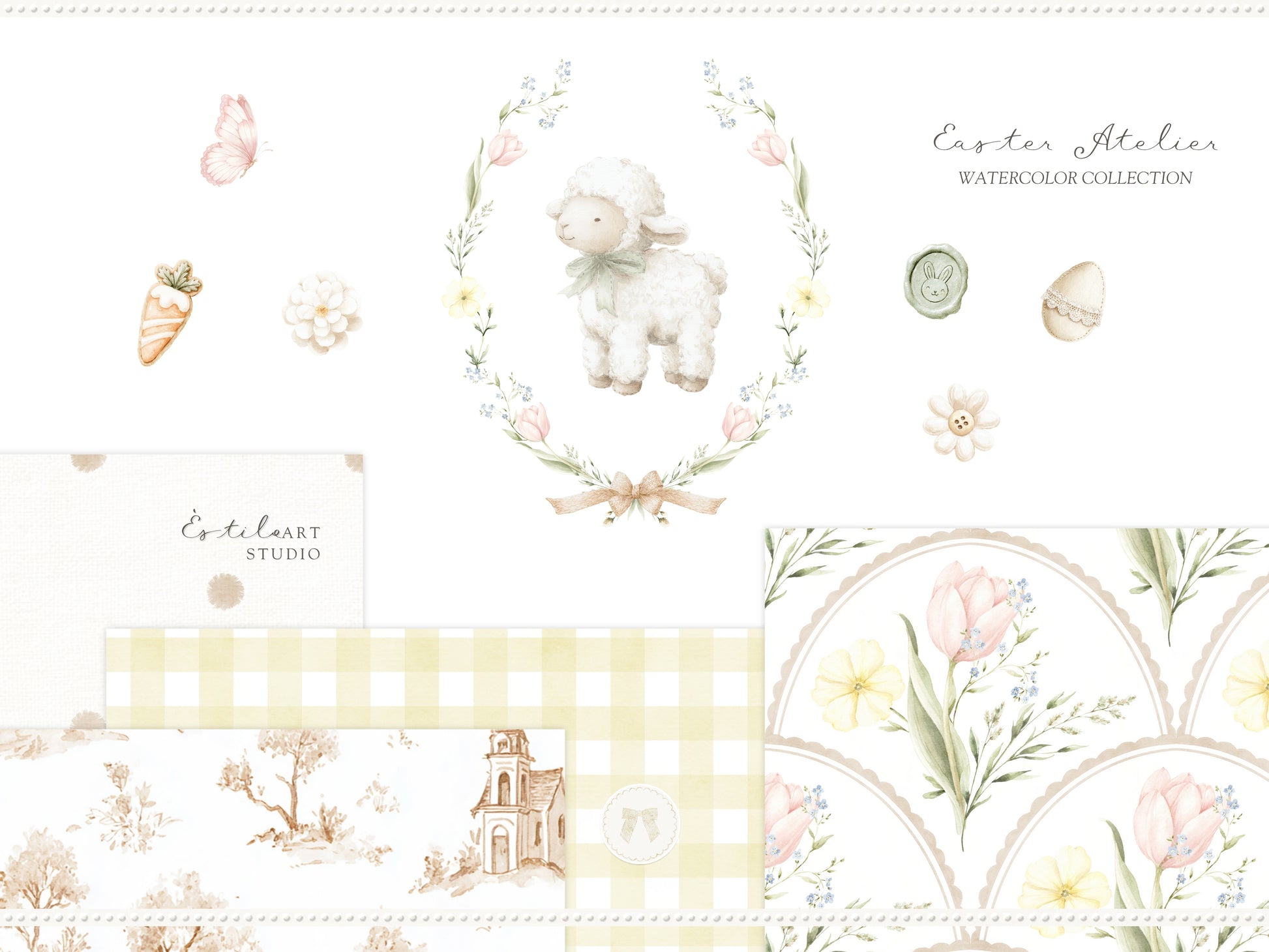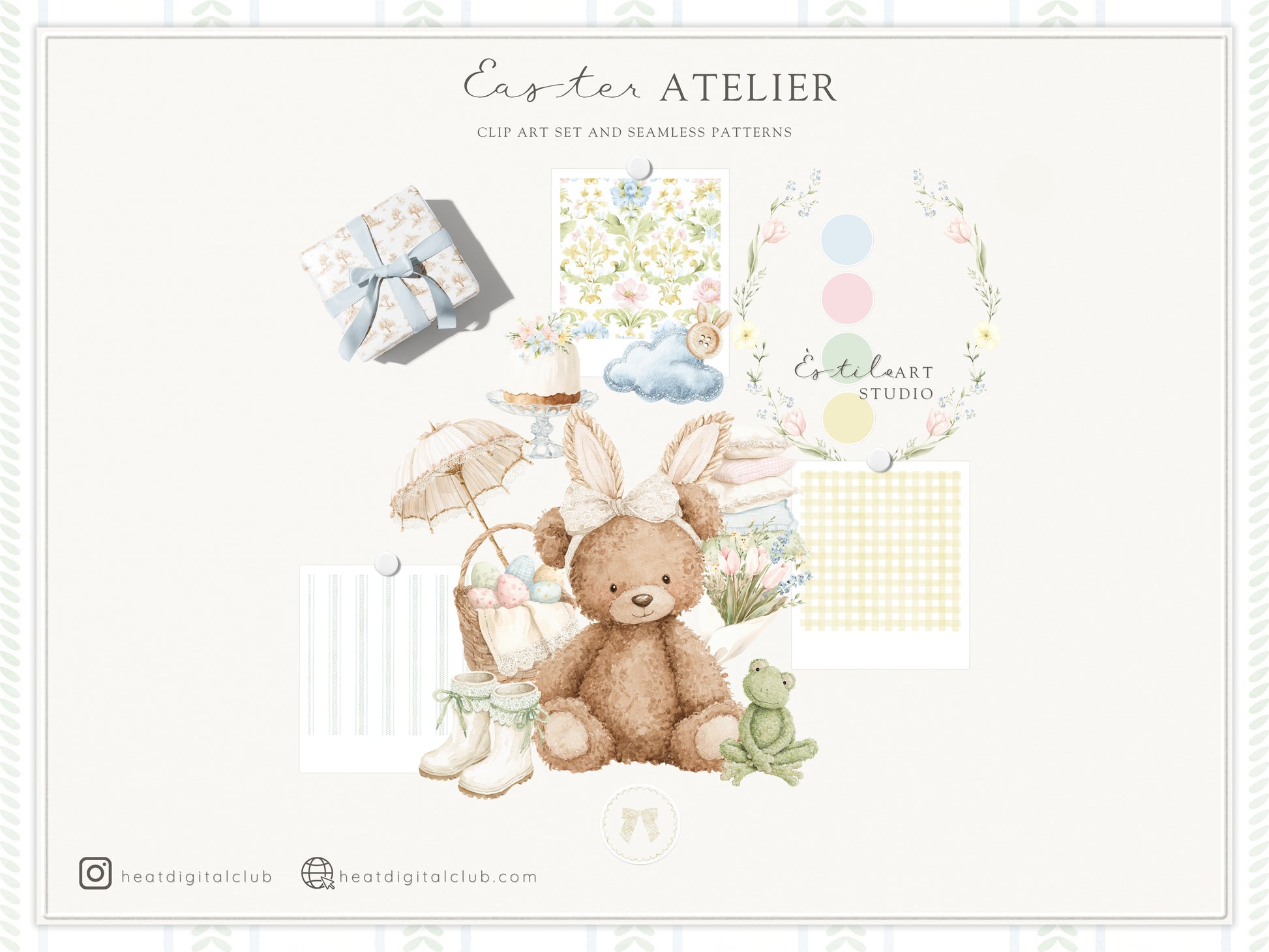 The complete Easter Atelier collection — clipart and seamless patterns, thoughtfully created to work together in harmony and elevate your design experience.