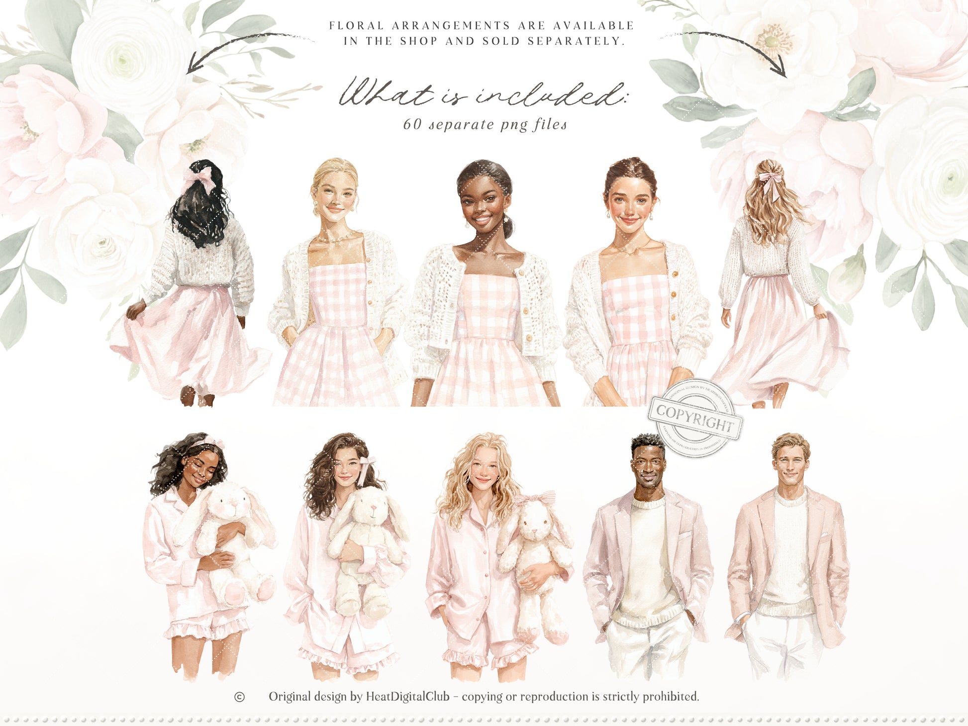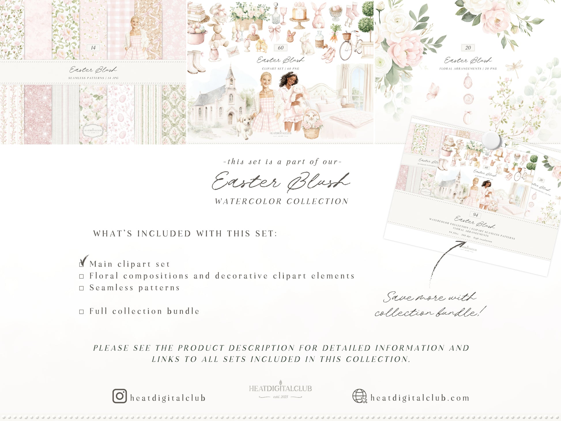 • You can purchase the clipart, patterns, and florals separately — or save by getting the full collection bundle.