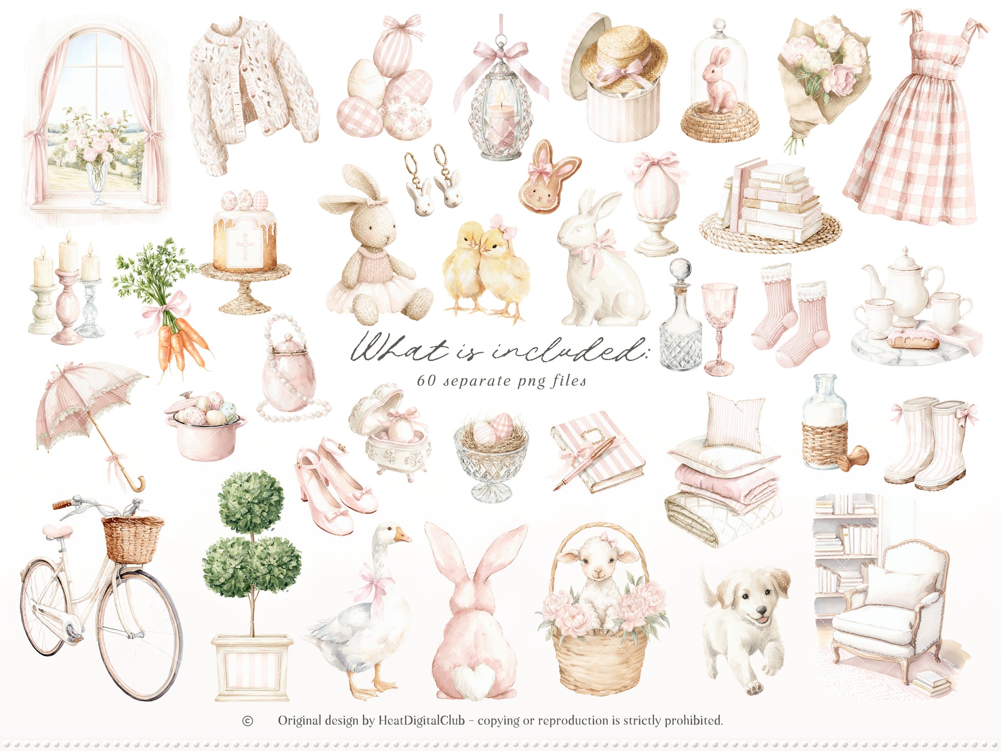 Easter Blush - Bundle Elegant Easter Clipart, Pastel Pink Spring, Cottagecore, Bunny | 94 PNG/JPEG