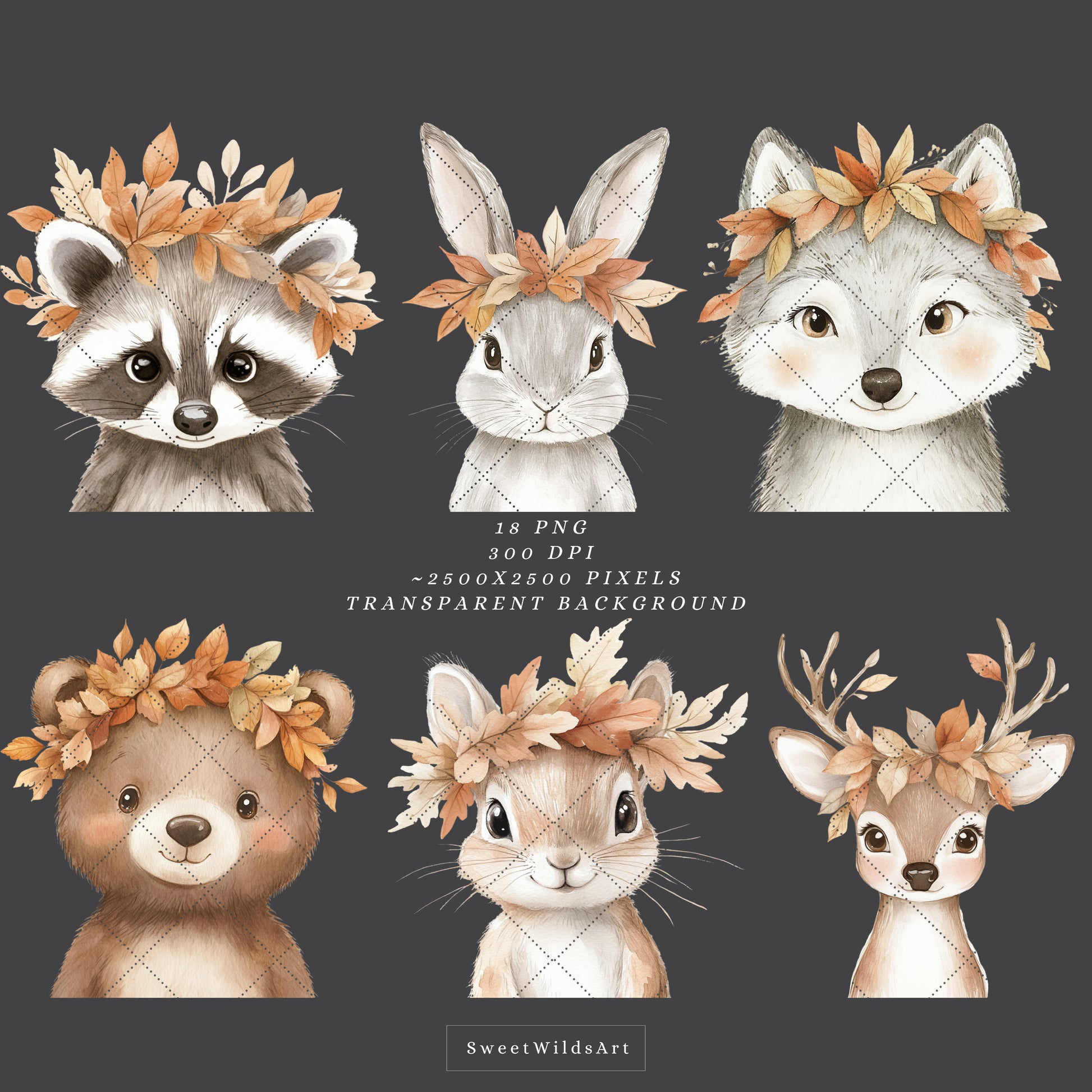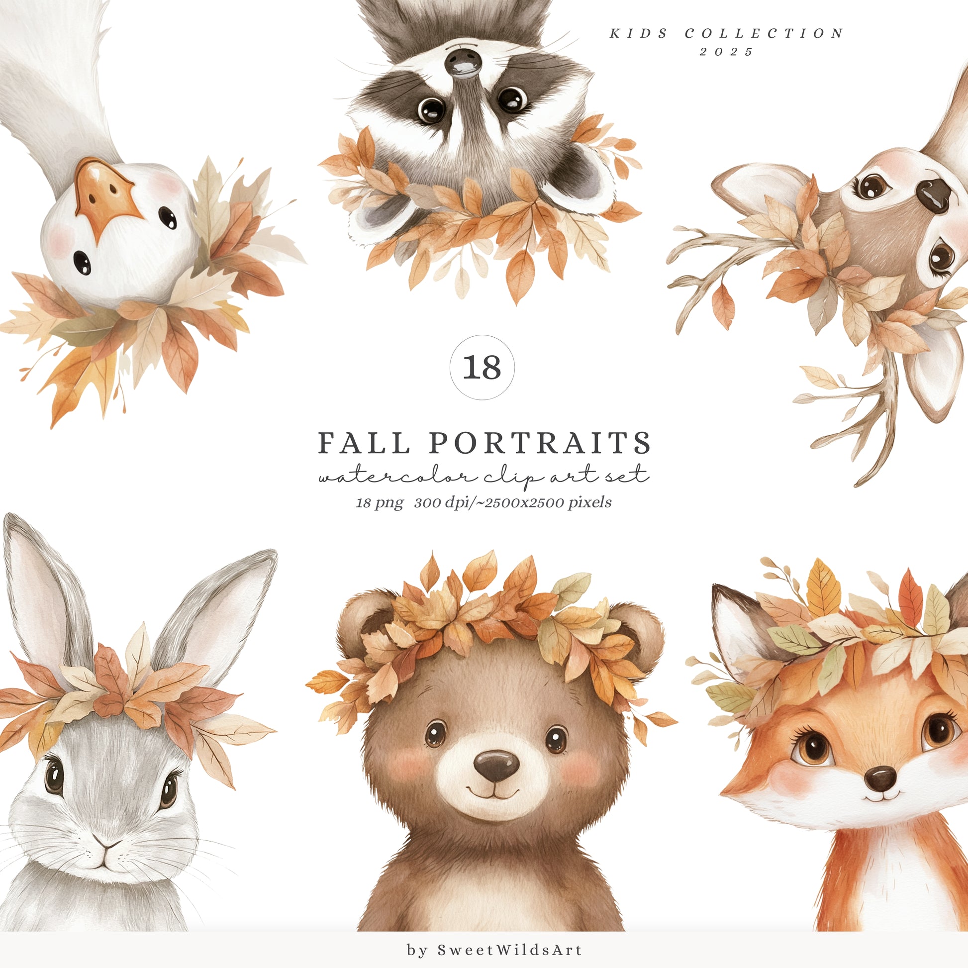 Fall Portraits - Cute Animals Clipart, Baby Shower, Autumn Nursery | 18 PNG