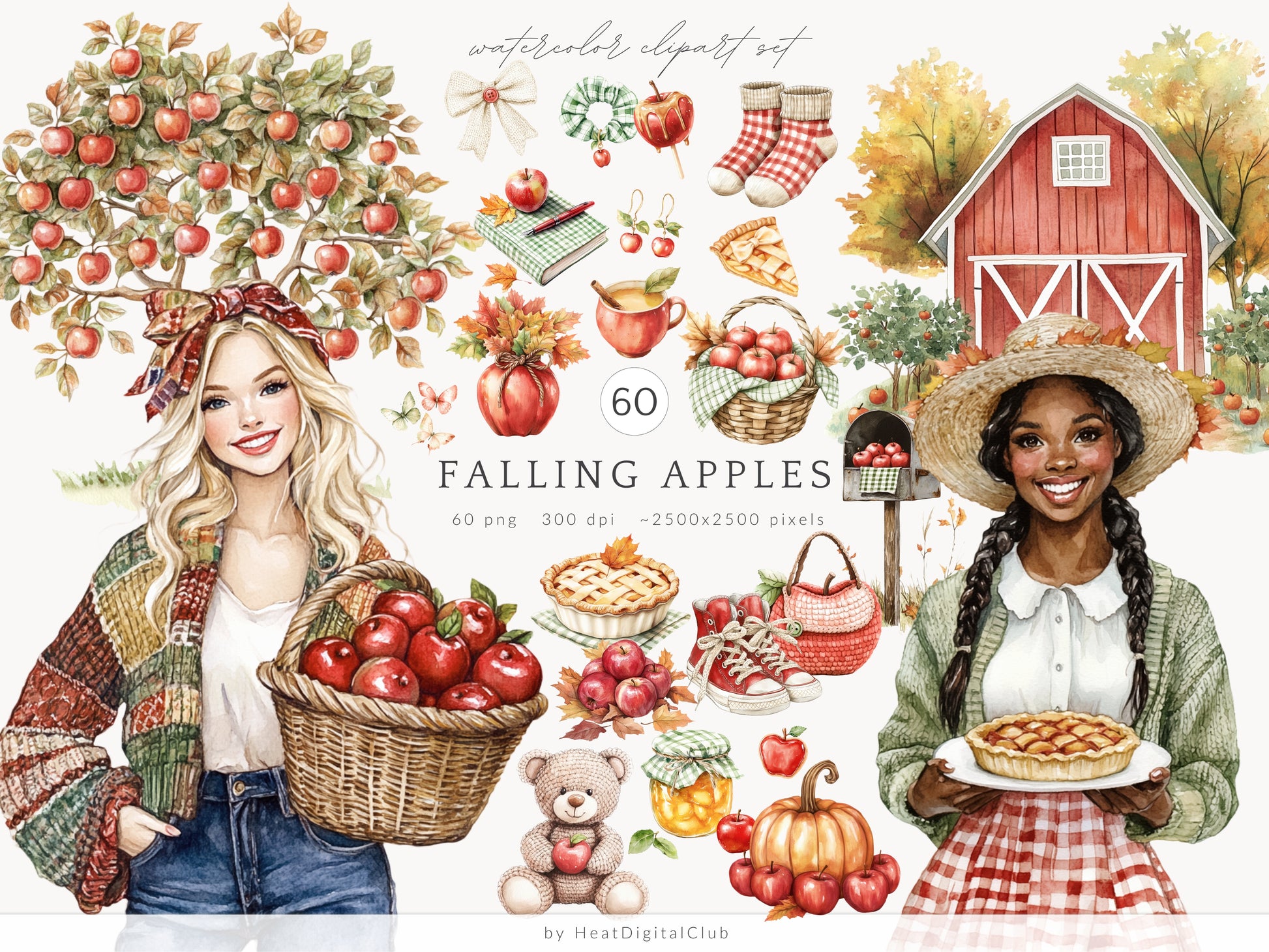 Falling Apples - Collection Bundle, Cozy Autumn Farm, Pumpkins | 95 PNG/JPEG