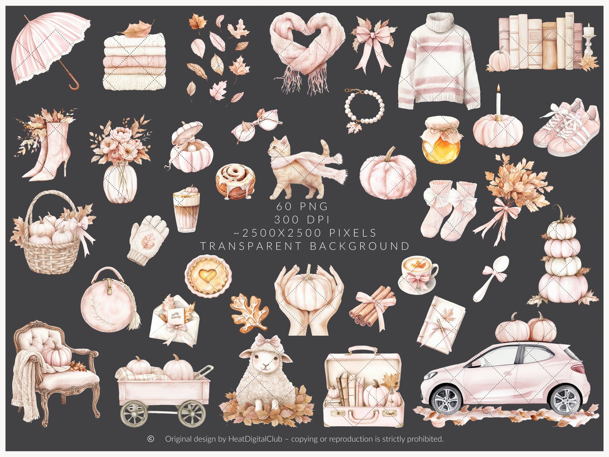Falling Pretty - Collection Bundle, Autumn, Pink Pumpkins, Cozy, Coquette | 95 PNG/JPEG