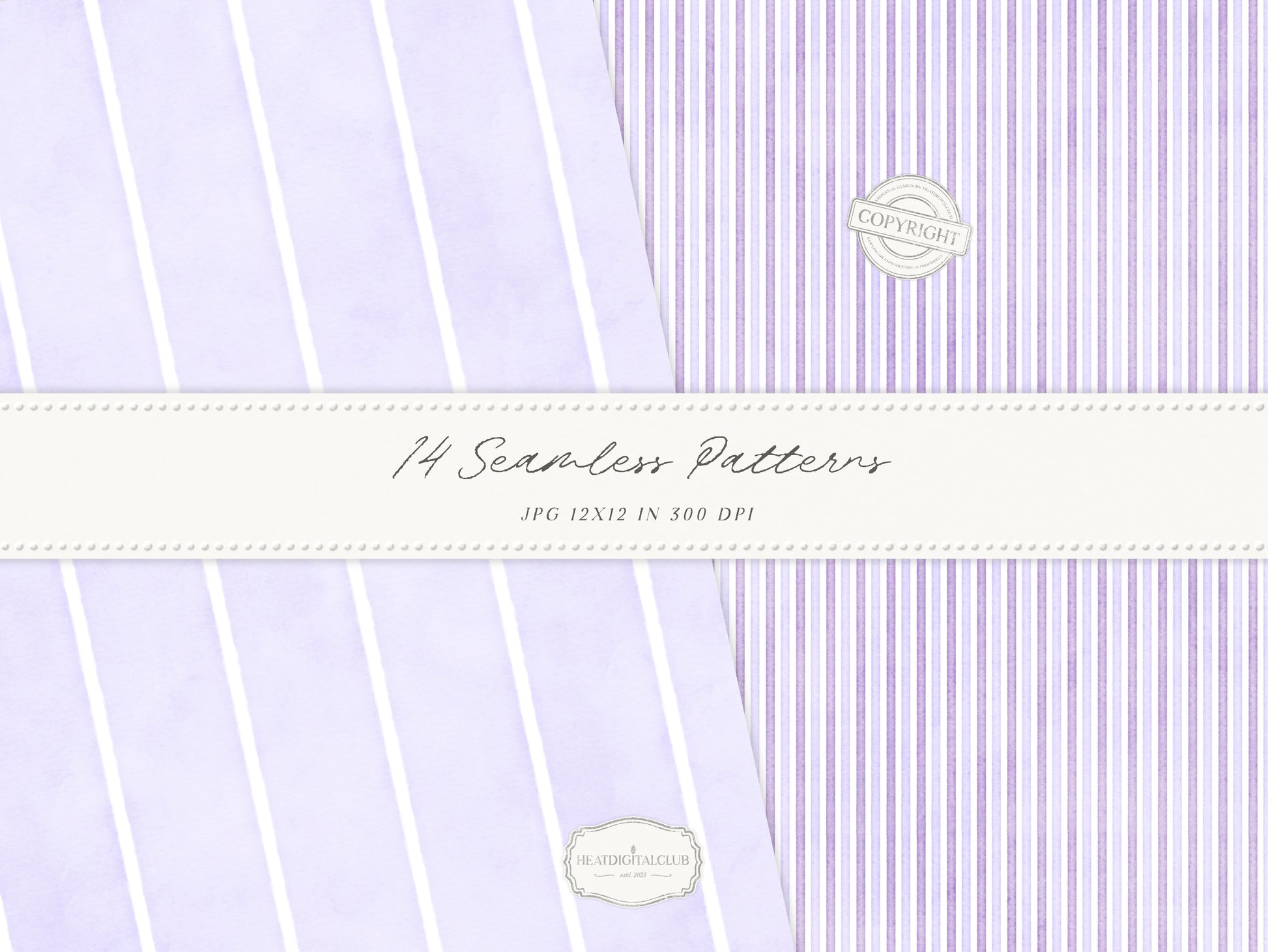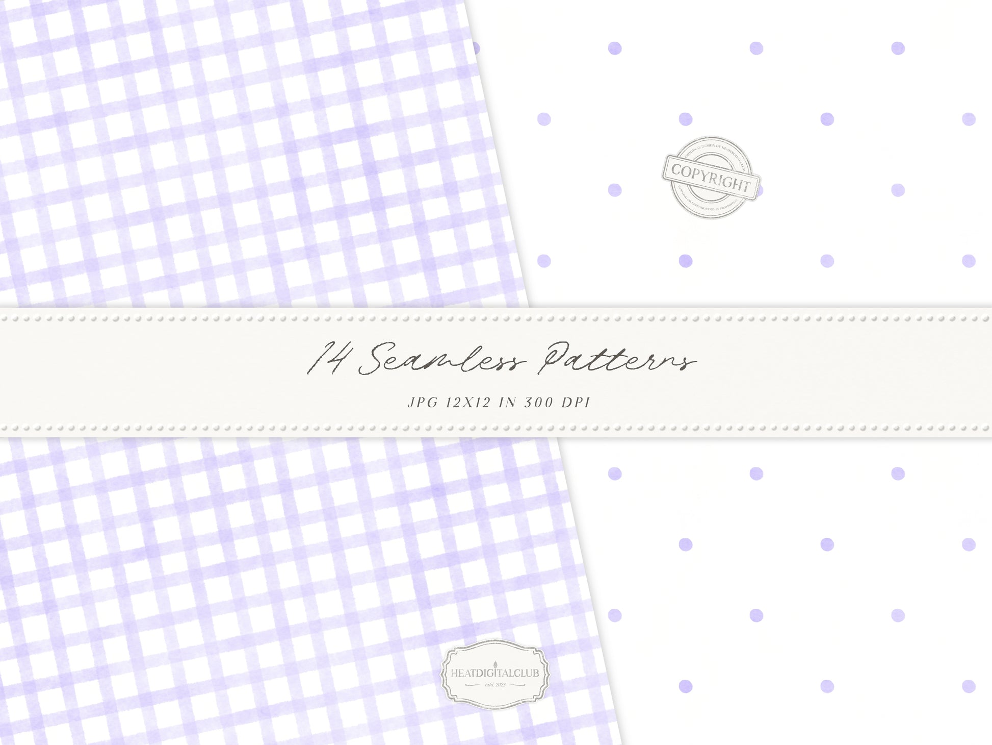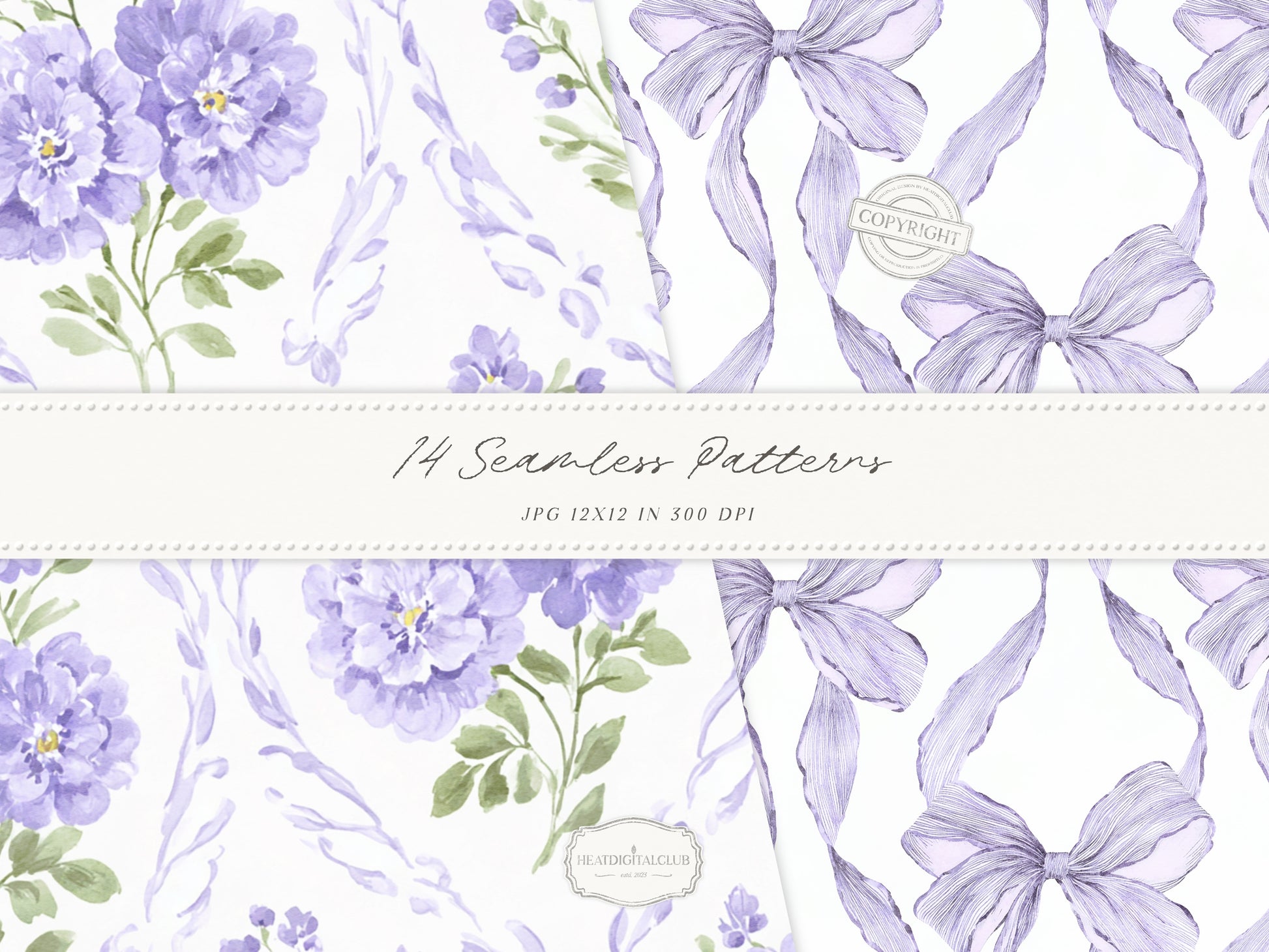 Grandmillennial Set 7 - Seamless Patterns, Lavender Floral, Purple Stripe, Plaid, Elegant Botanical Patterns | 14 JPEG
