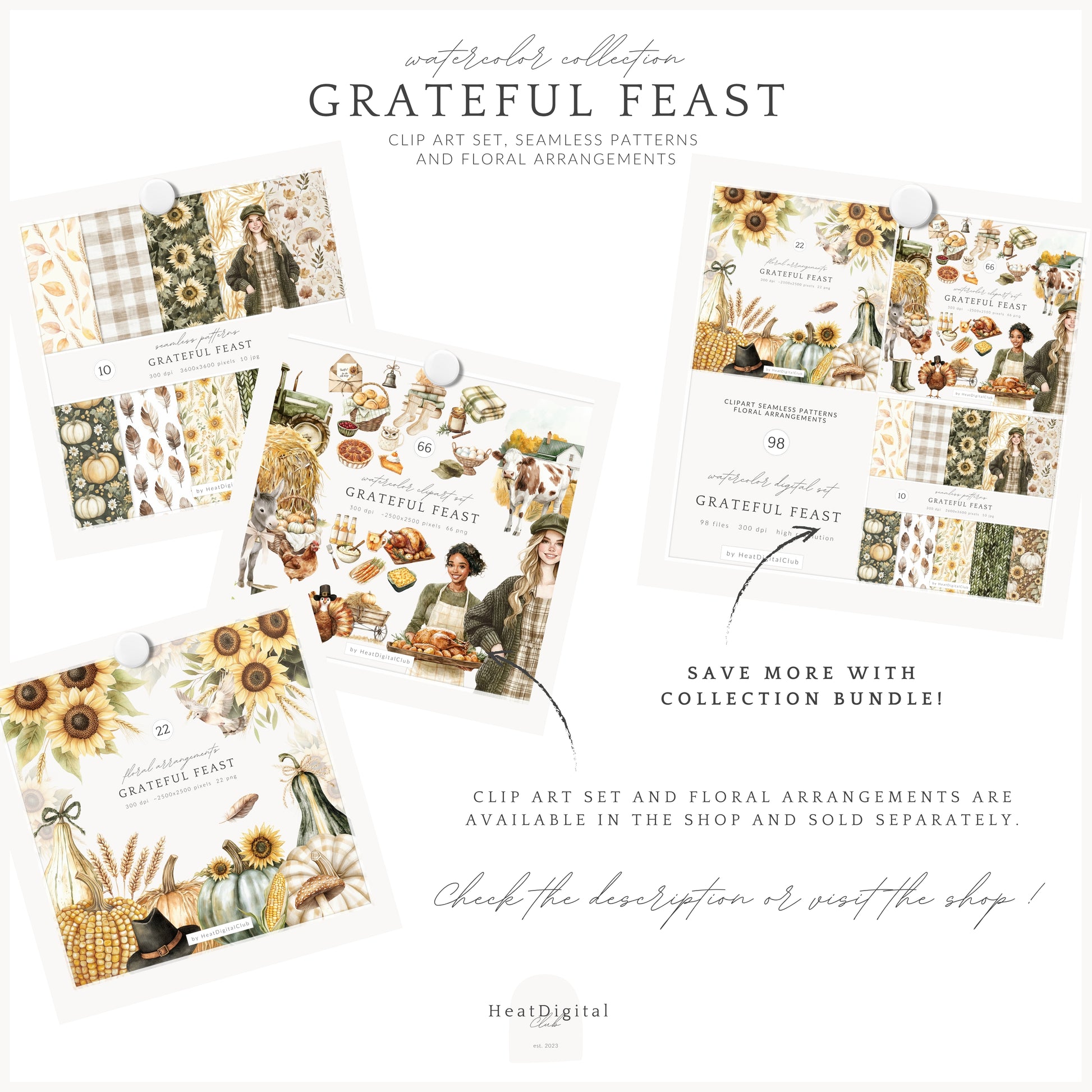 • You can purchase the clipart, patterns, and florals separately — or save by getting the full collection bundle.
