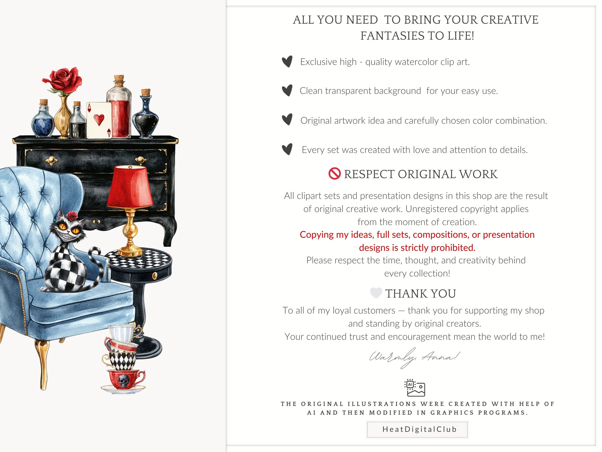 Bring your story to life with the Haunted Alice clipart set — a curated selection of watercolor illustrations designed for creative freedom and visual charm. Perfect for everything from digital stickers to paper goods.