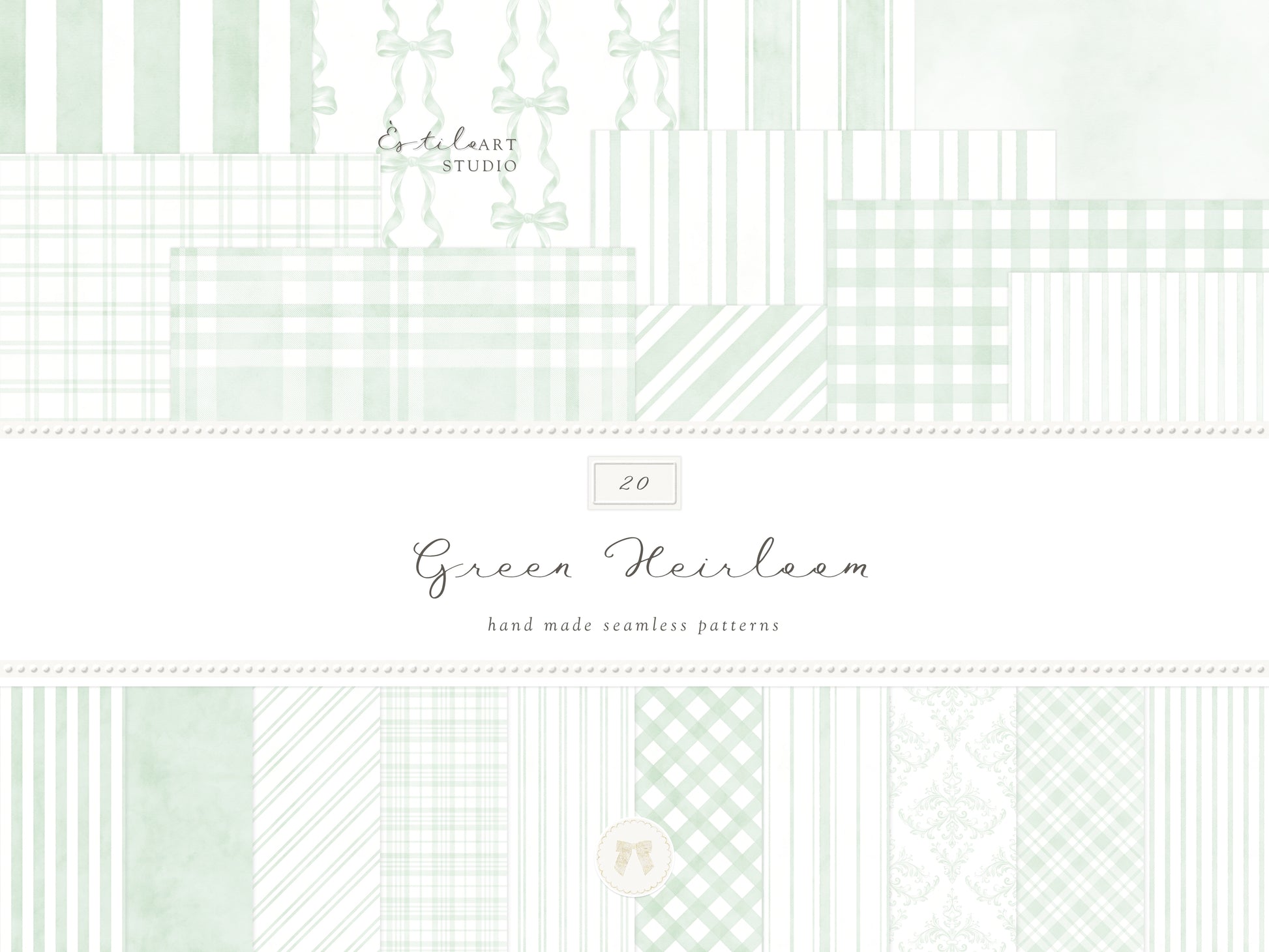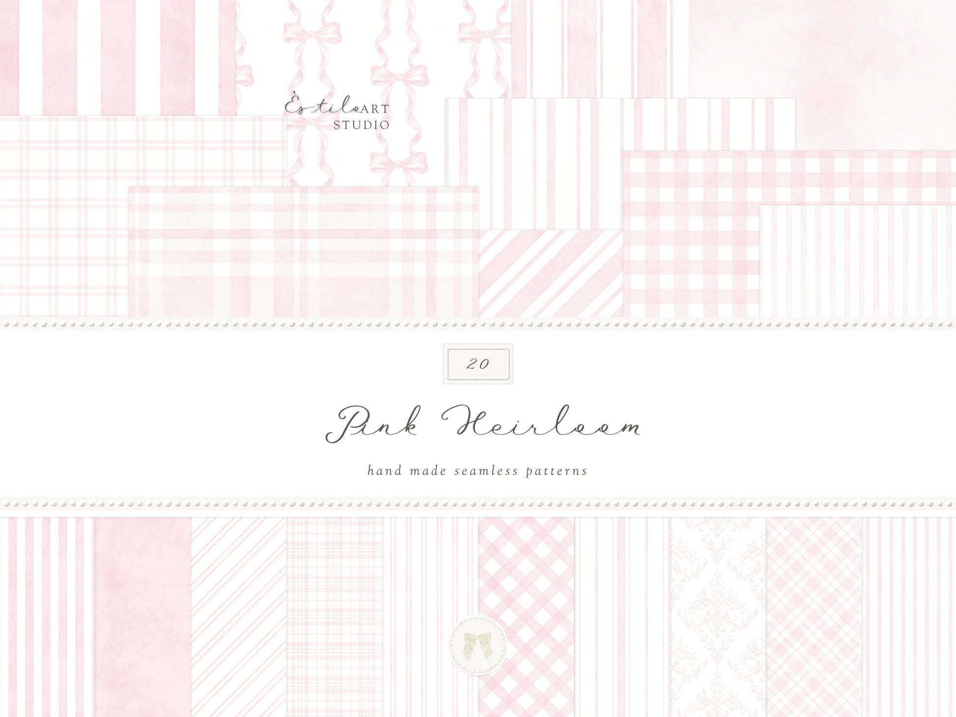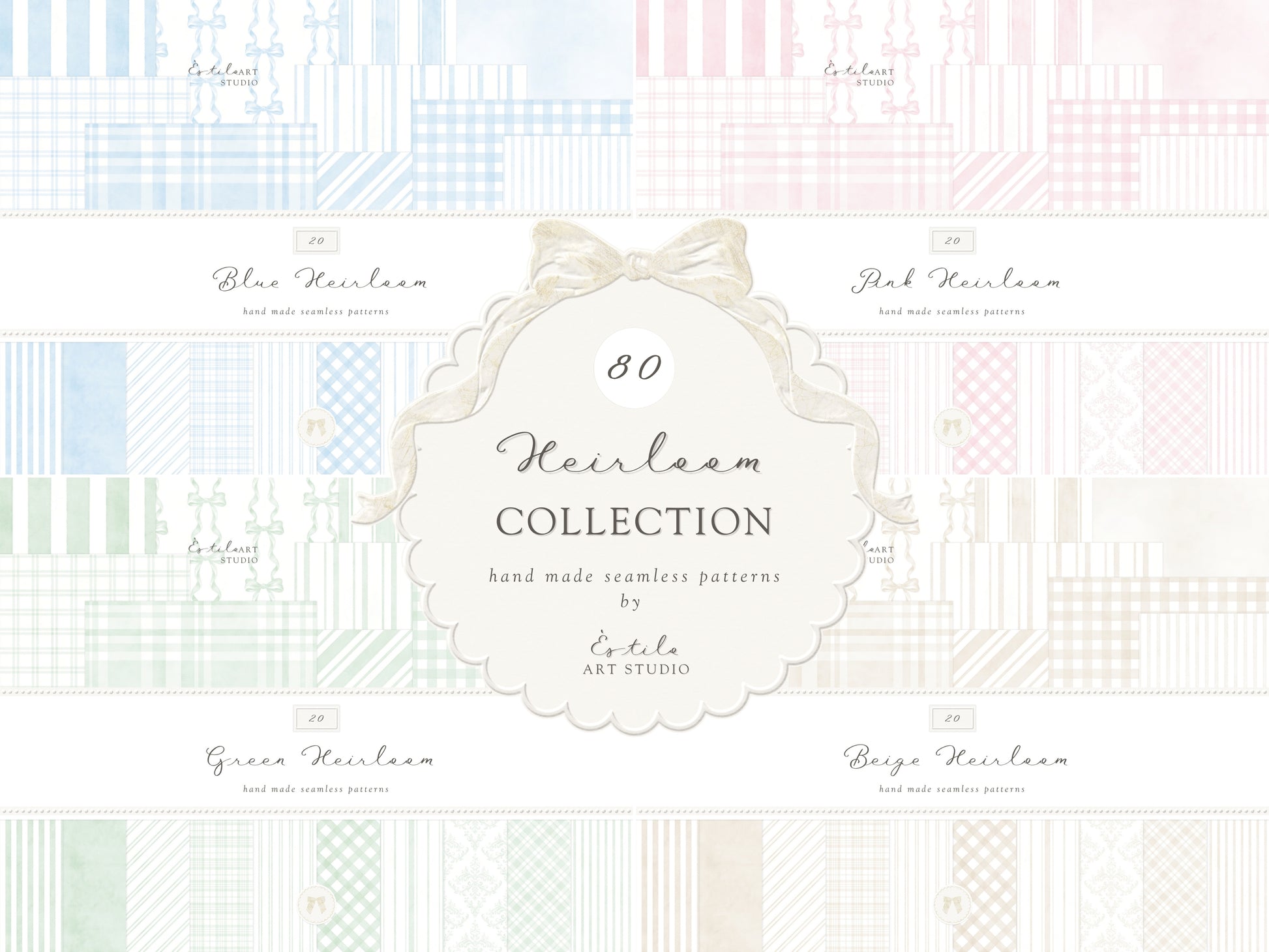 Heirloom - Seamless Patterns Collection, Classic Stripe Gingham Damask Bows, Elegant Digital Paper | 80 JPEG