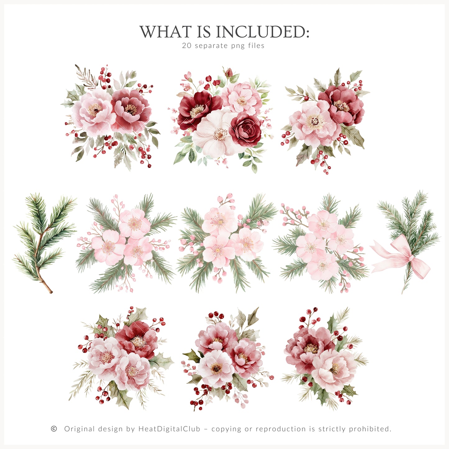 Holiday Embrace - Floral Arrangements, Elegant Flowers & Christmas Ornaments | 20 PNG