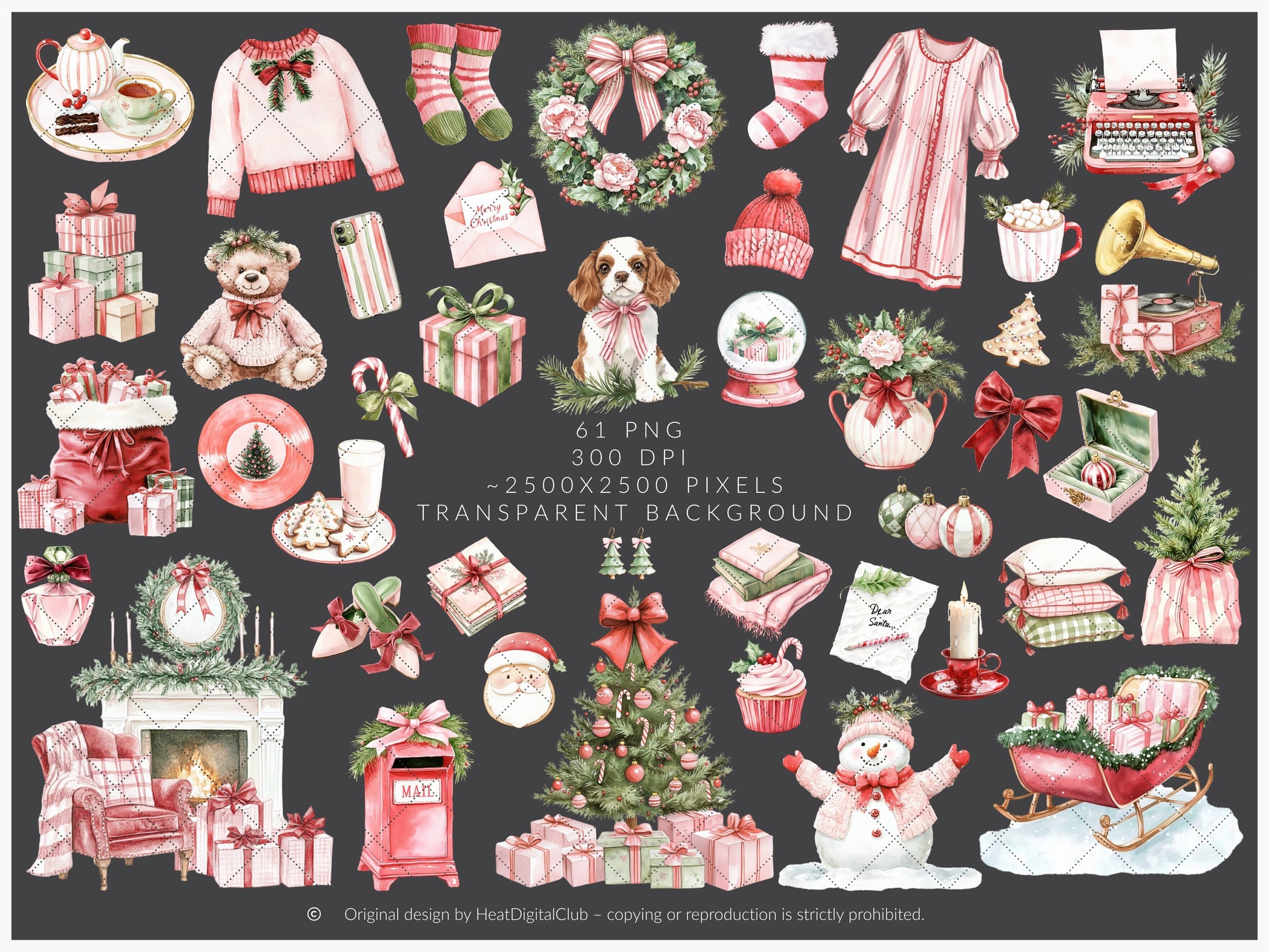 Holiday Embrace - Watercolor Clipart Set, Elegant Cozy Christmas | 61 PNG