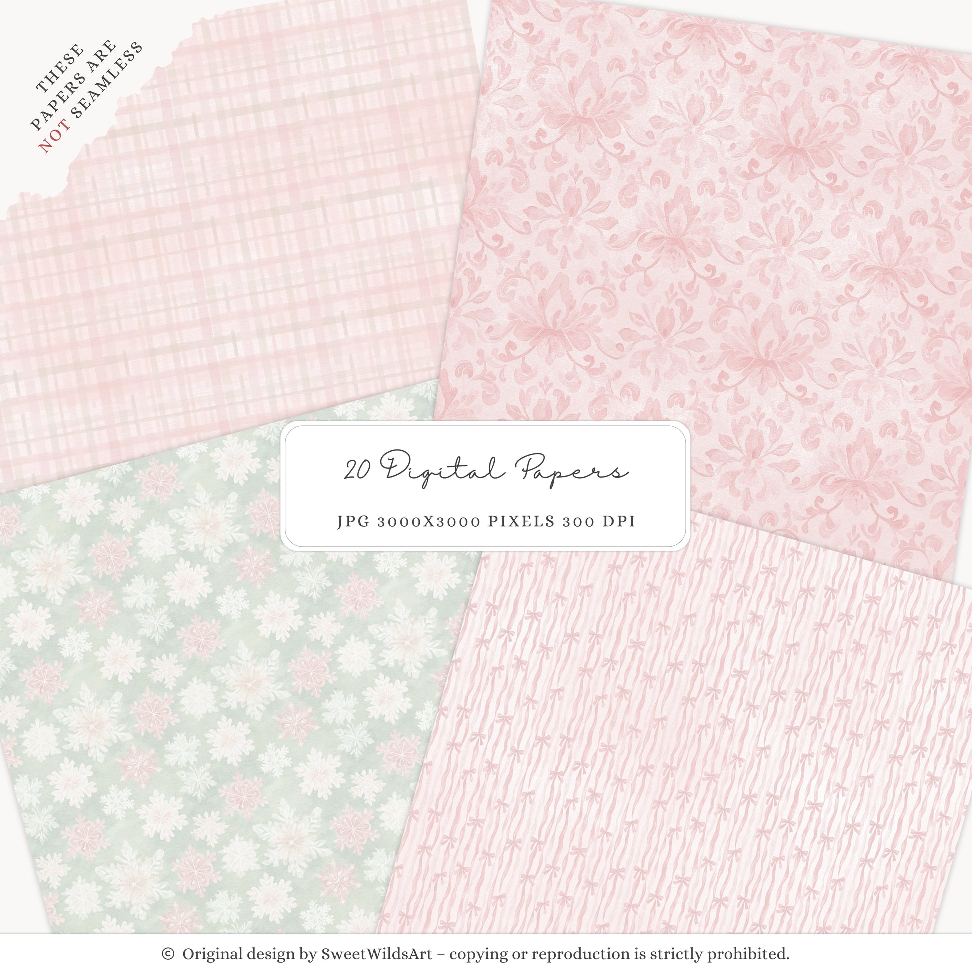 Holly Jolly - Christmas Digital Papers, Pink Red Holiday, Cozy Winter | 20 JPEG