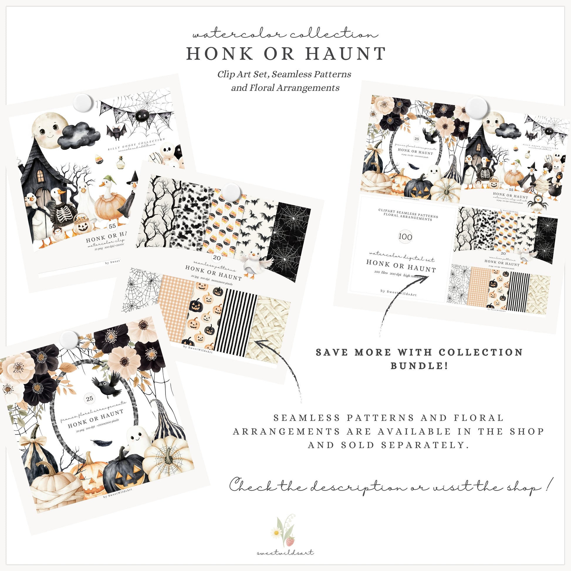 • You can purchase the clipart, patterns, and florals separately — or save by getting the full collection bundle.