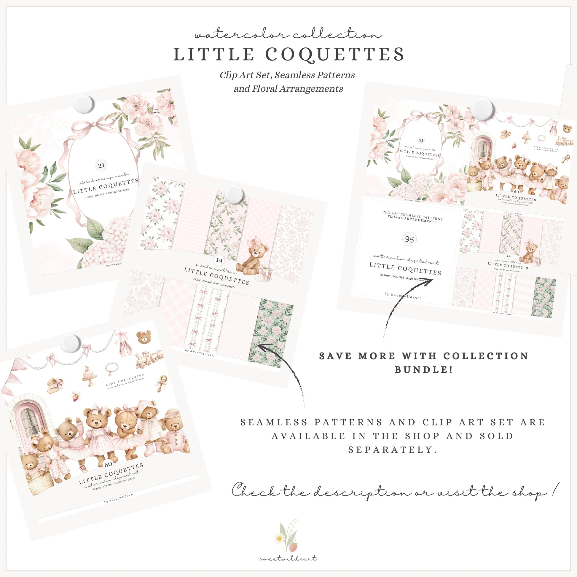 Little Coquettes - Collection Bundle, Teddy Bear, Pink Nursery, Grandmillennial | 95 PNG/JPEG