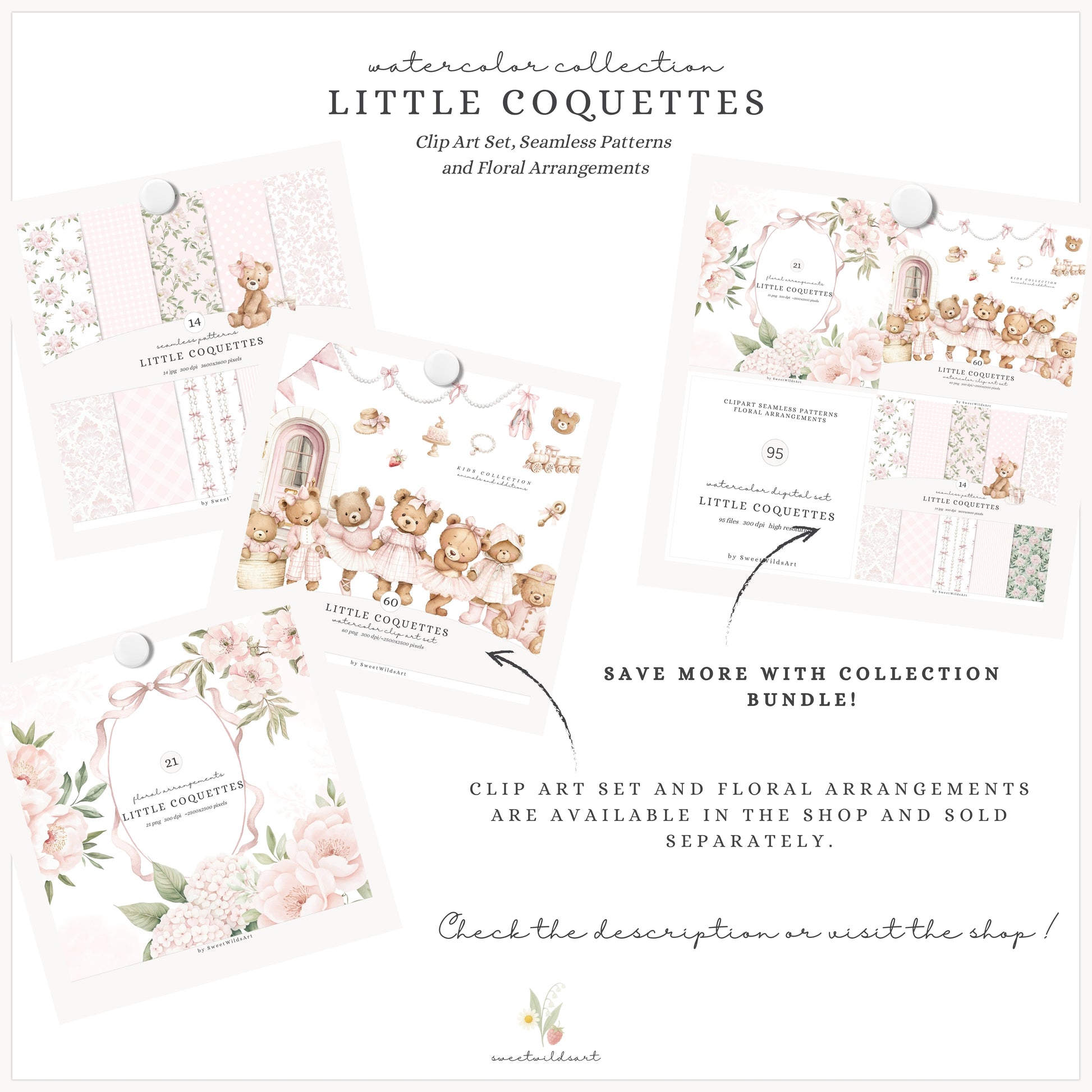 Little Coquettes - Collection Bundle, Teddy Bear, Pink Nursery, Grandmillennial | 95 PNG/JPEG