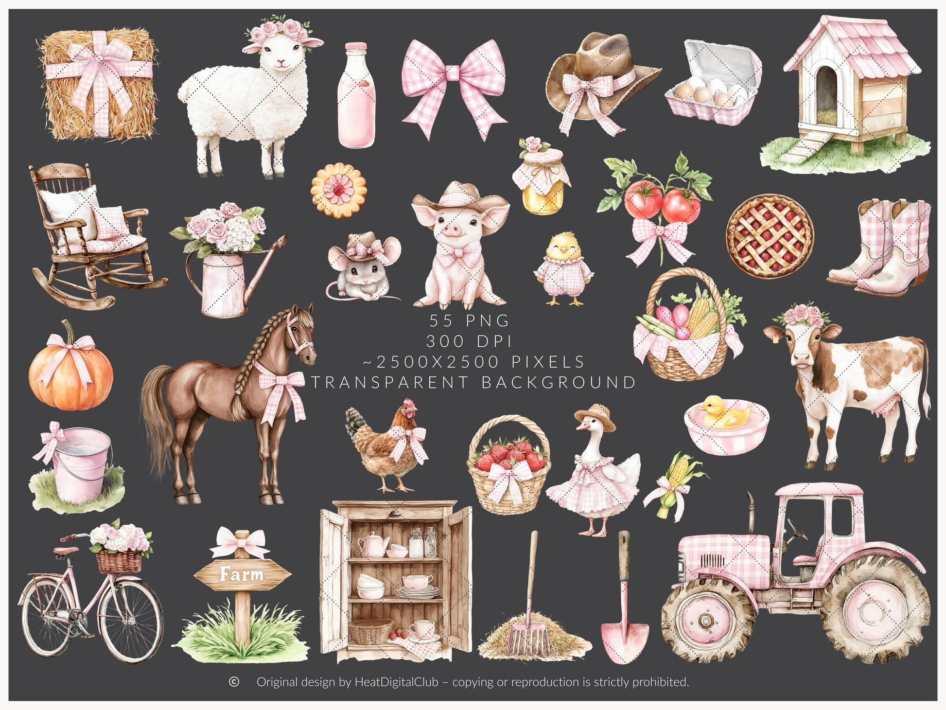 Lovely Farm - Collection Bundle, Coquette Farm Girl, Pink Country | 90 PNG/JPEG