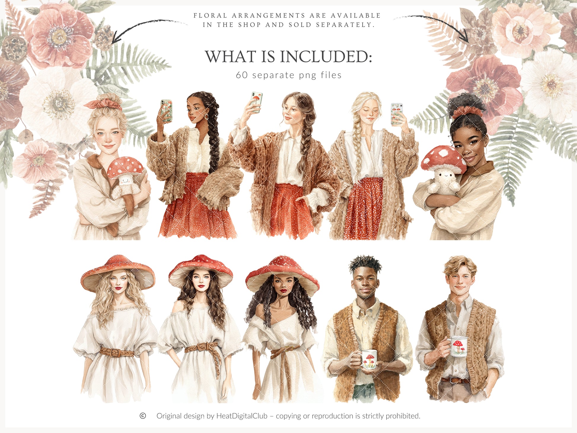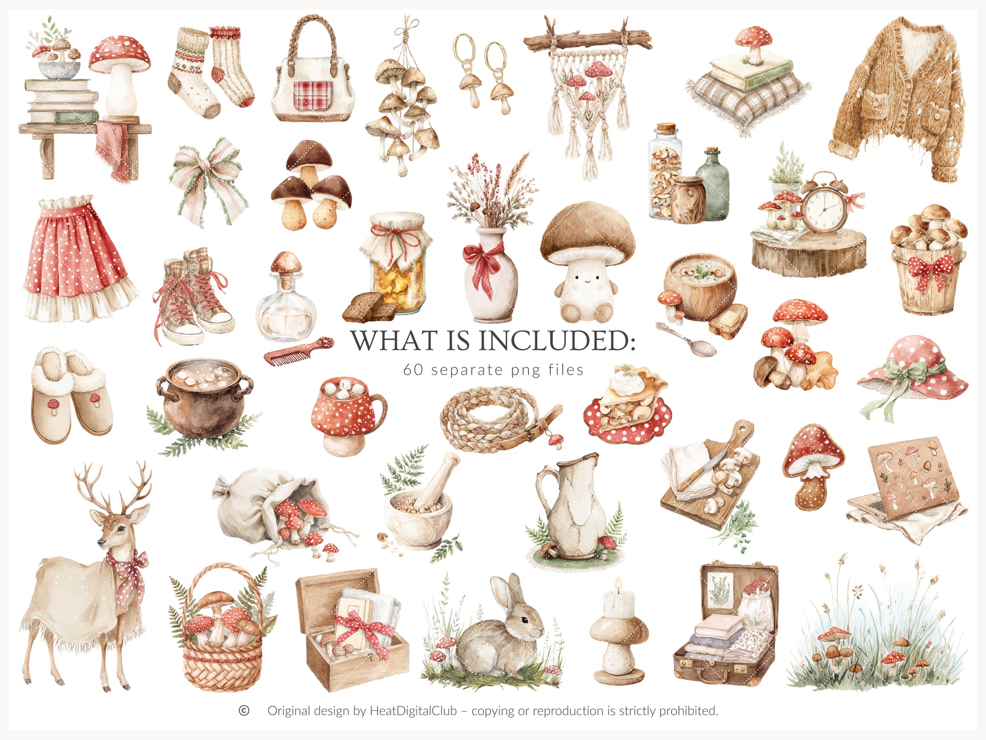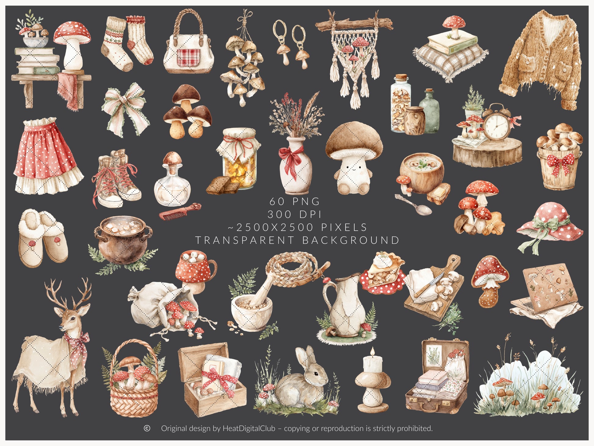 Mushroom Garden - Cottage Clipart, Forest Mushroomcore, Woodland Mushrooms, Cottagecore | 60 PNG