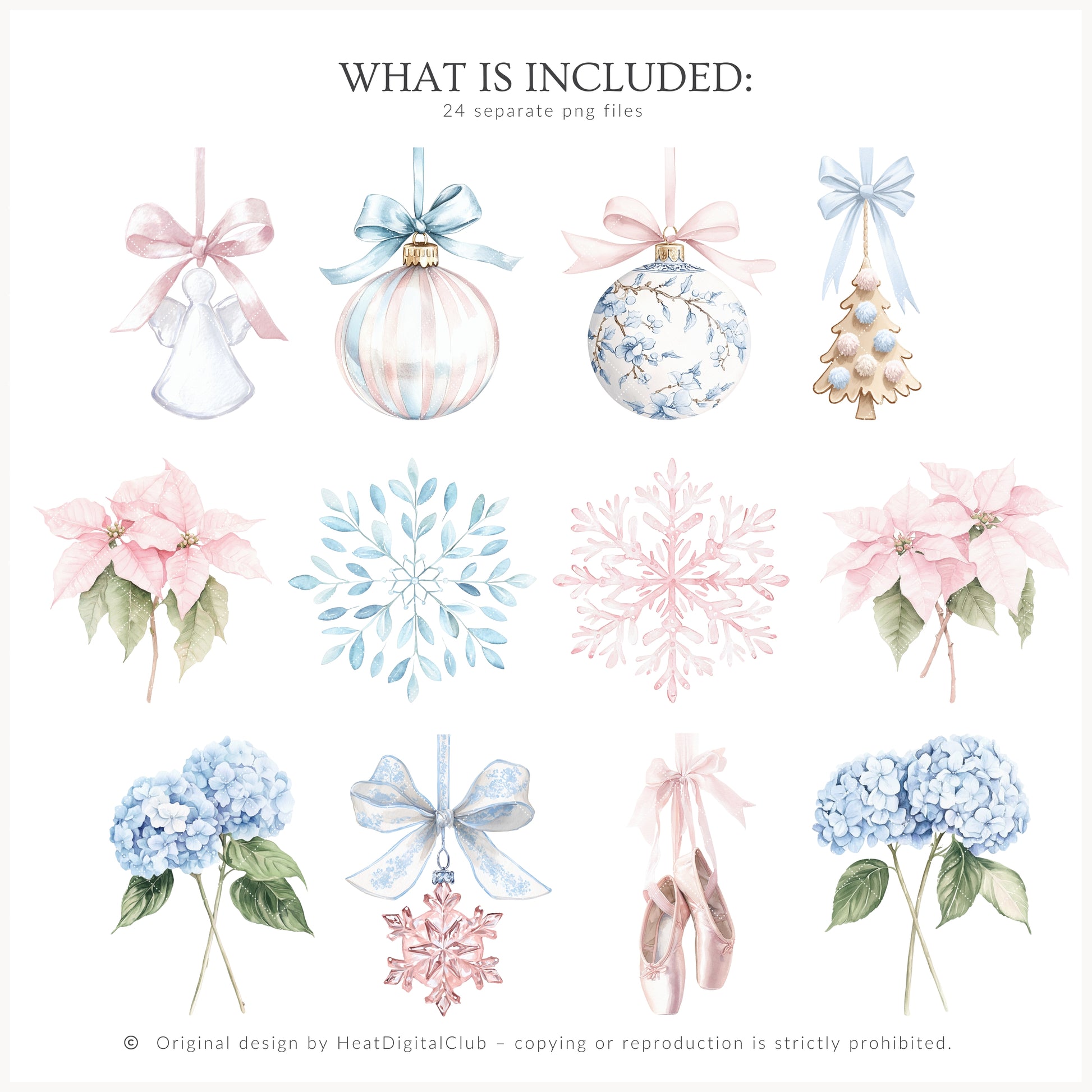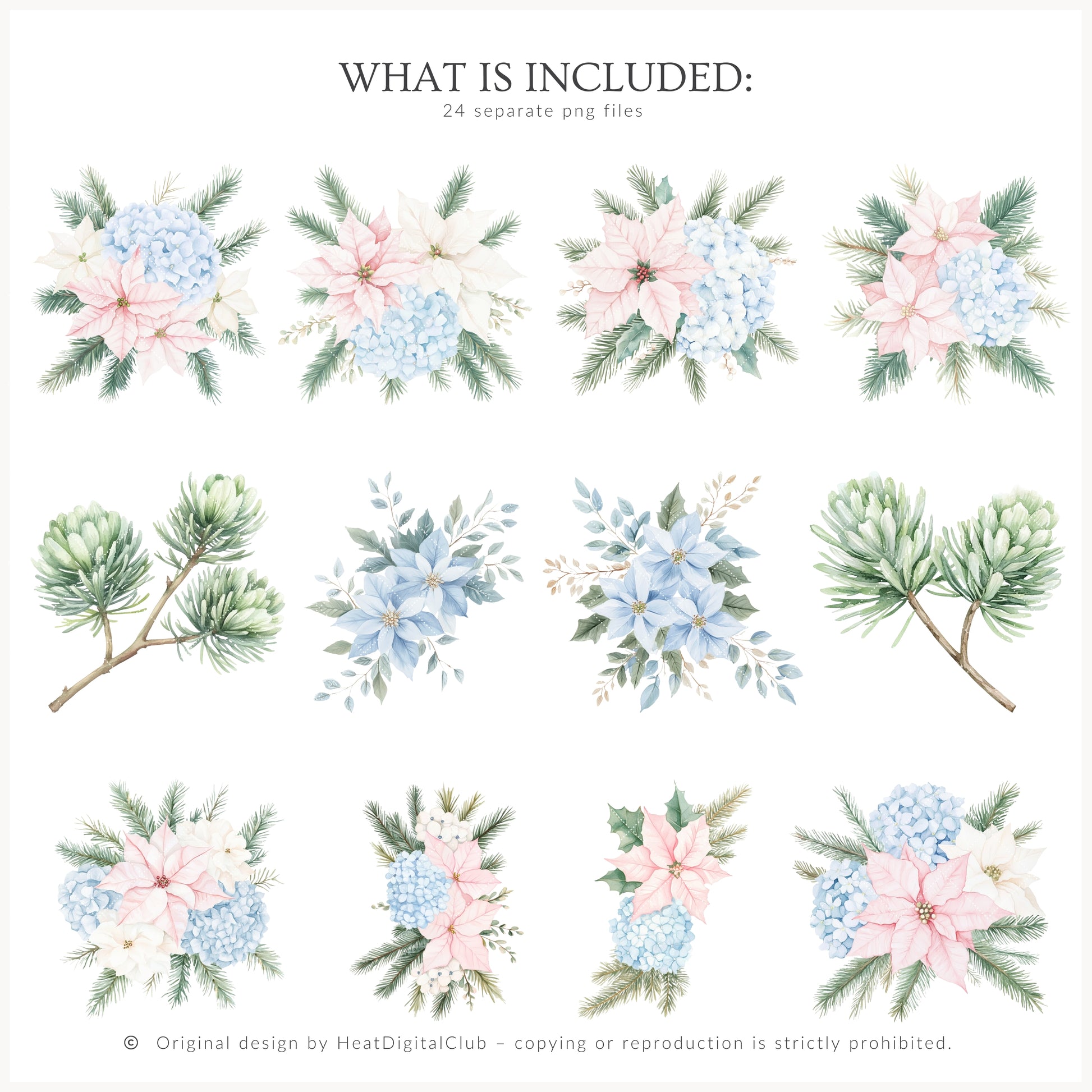 Pastel Noël - Floral Arrangements, Christmas, Soft Holiday Bouquets, Pink & Blue Greenery | 24 PNG