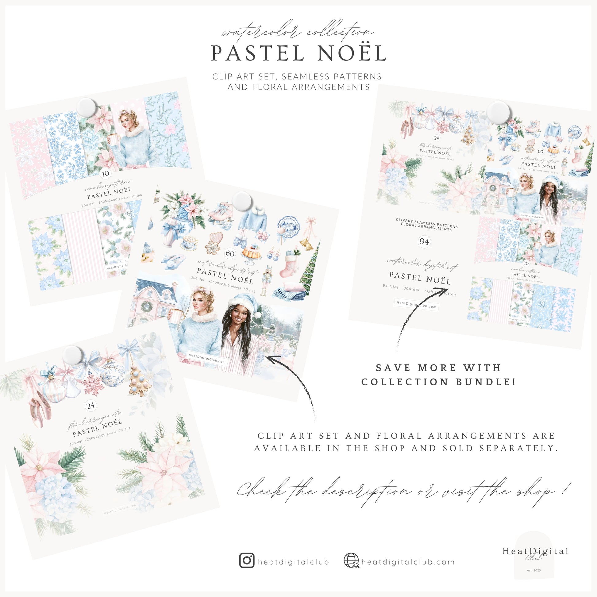 Add elegance and character with the Pastel Noël seamless pattern collection — a versatile mix of timeless watercolor designs created to flow beautifully across any surface.