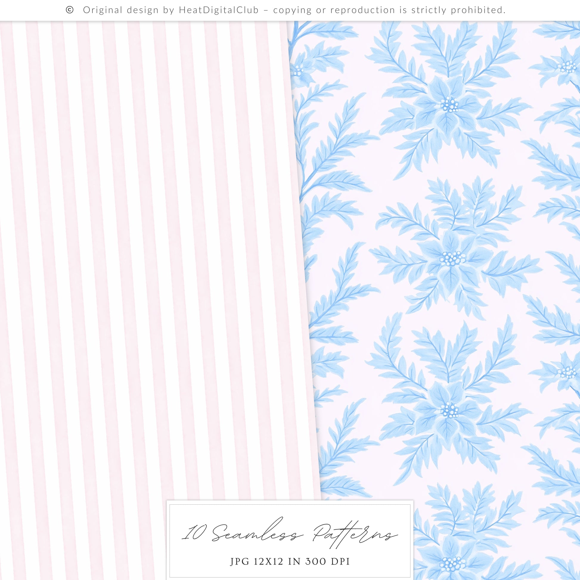 Pastel Noël - Seamless Christmas Patterns, Grandmillennial, Pink Blue Chinoiserie | 10 JPEG