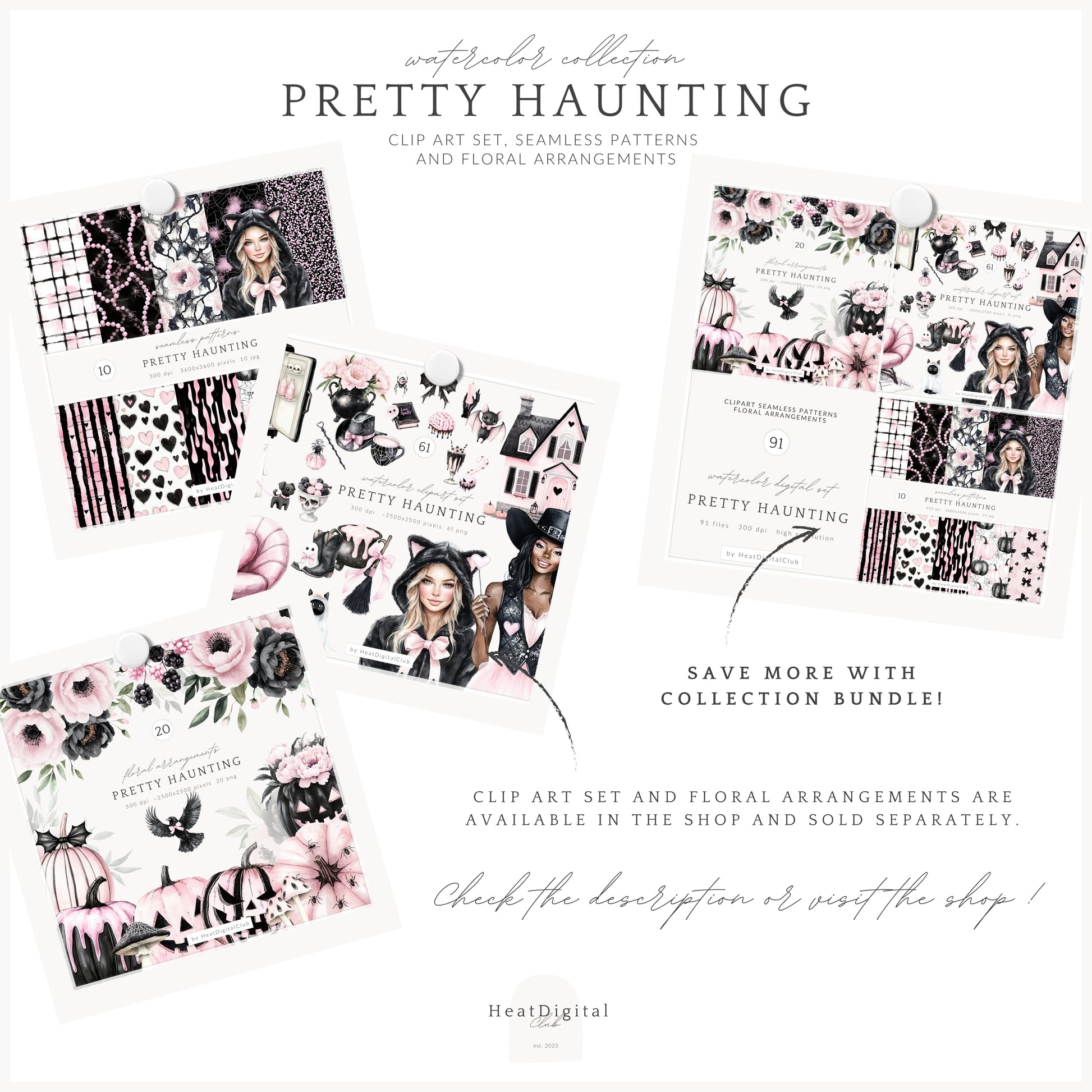 Pretty Haunting - Collection Bundle, Black & Pink Halloween, Haunted House | 91 PNG/JPEG