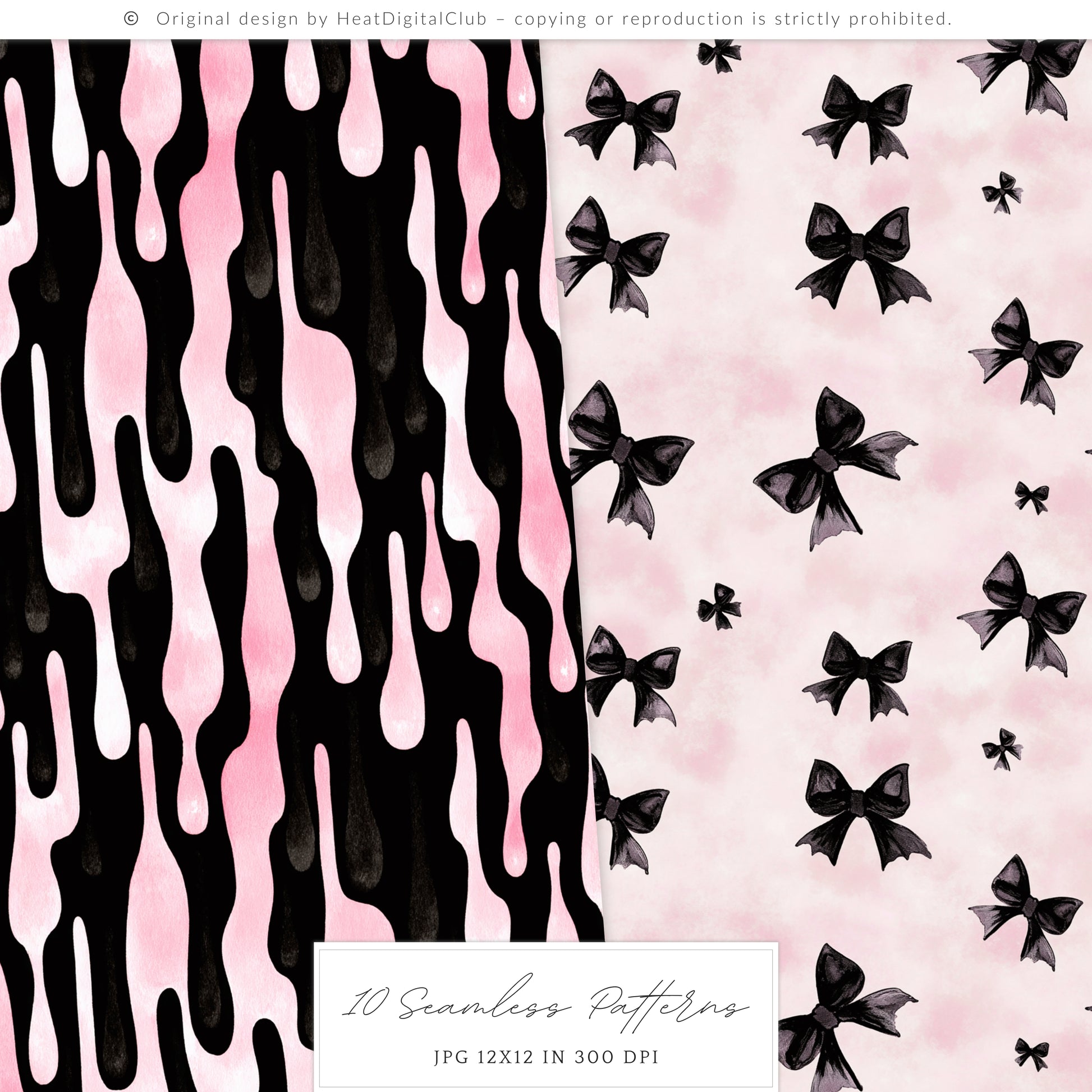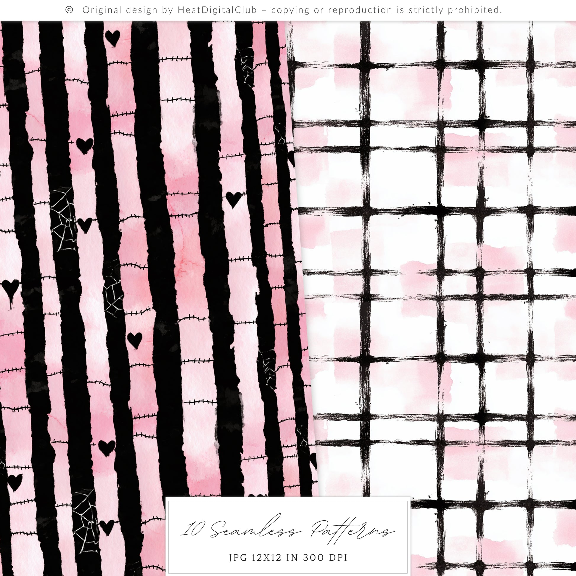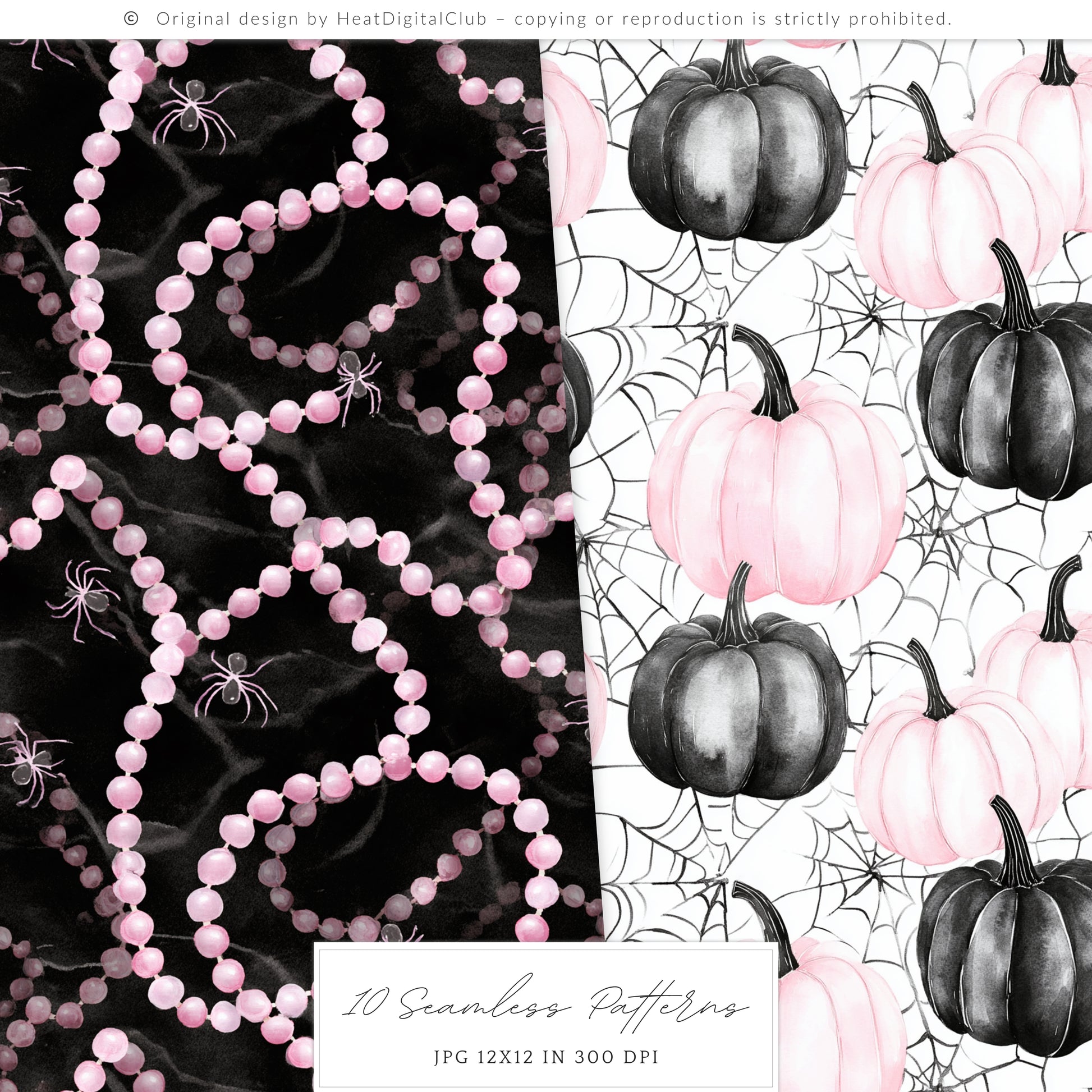 Pretty Haunting - Seamless Patterns, Black & Pink Gothic Halloween, Spooky | 10 JPEG
