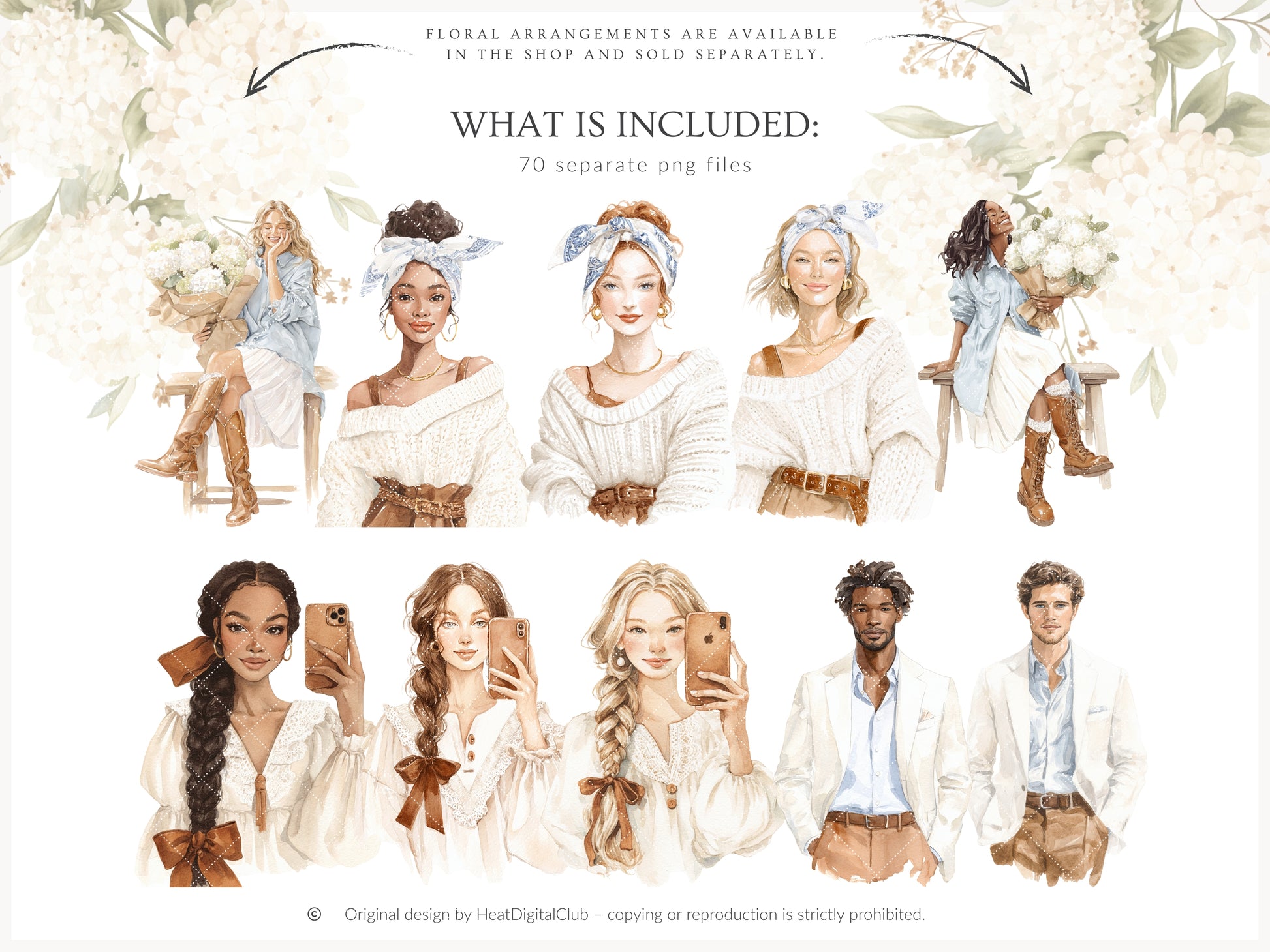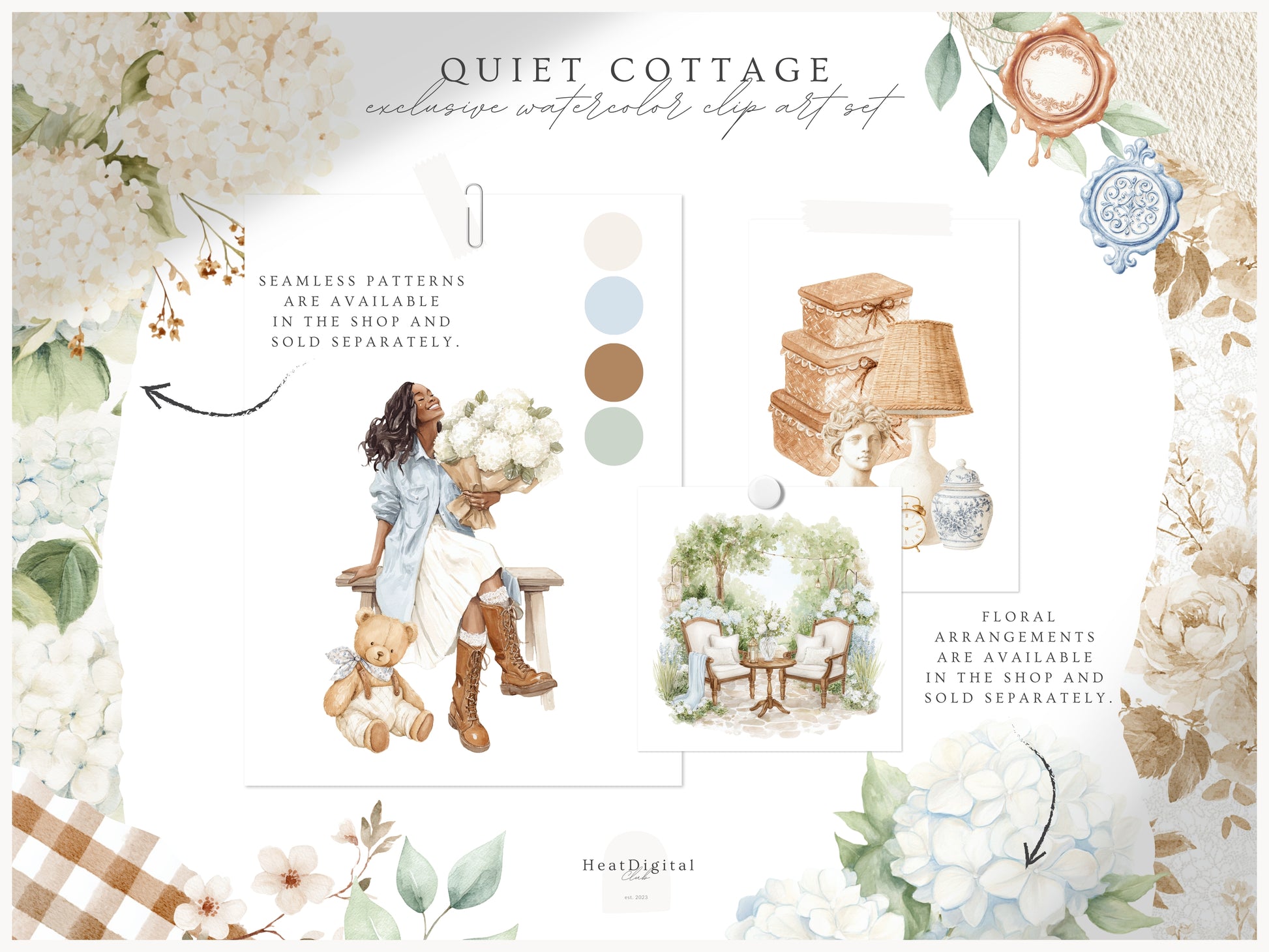 • You can purchase the clipart, patterns, and florals separately — or save by getting the full collection bundle.
