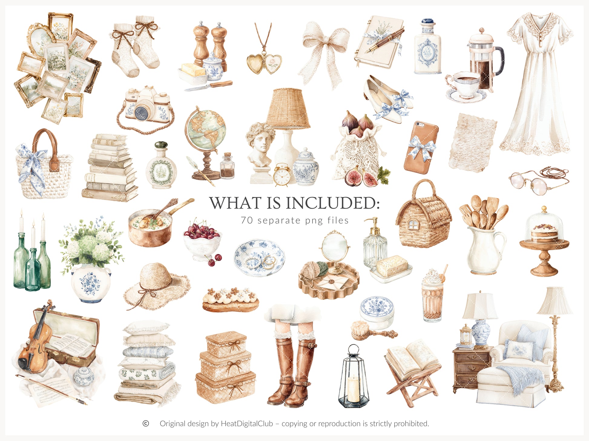 Quiet Cottage - Bundle Clipart, French Country Cottagecore, Rustic Vintage Aesthetic | 112 PNG/JPEG