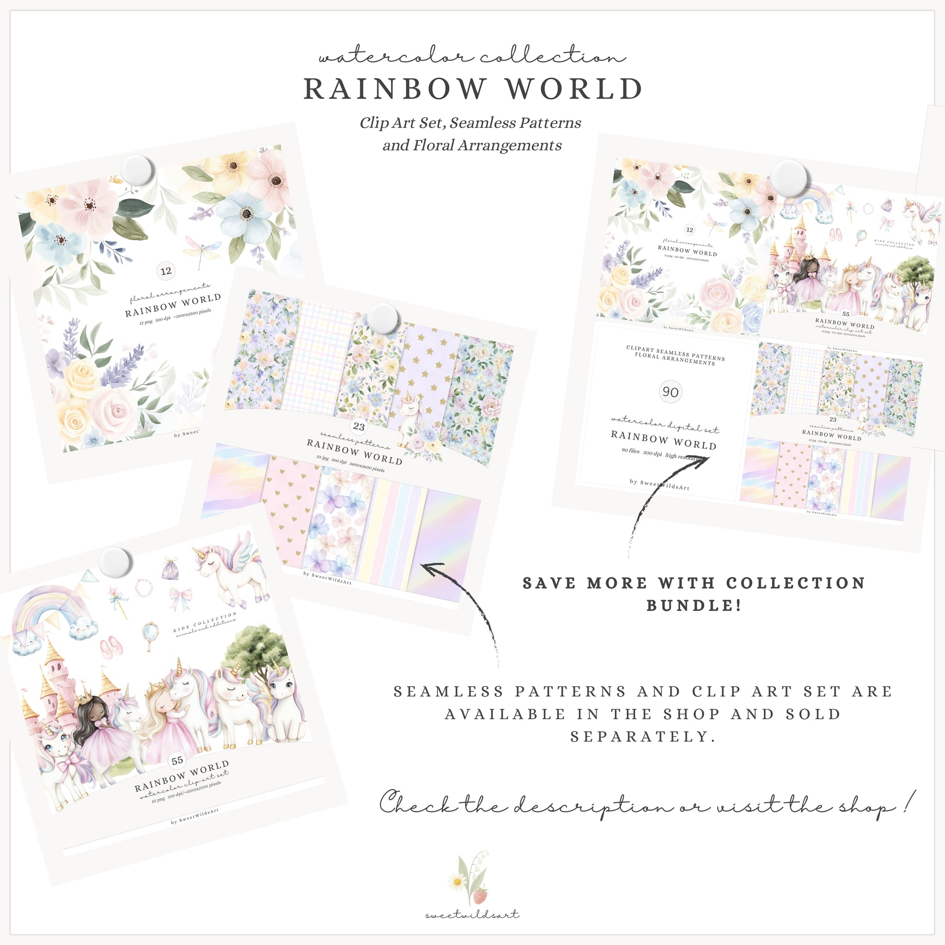 Rainbow World - Collection Bundle, Fairytale Unicorns, Princess, Patterns & Florals | 90 PNG/JPEG
