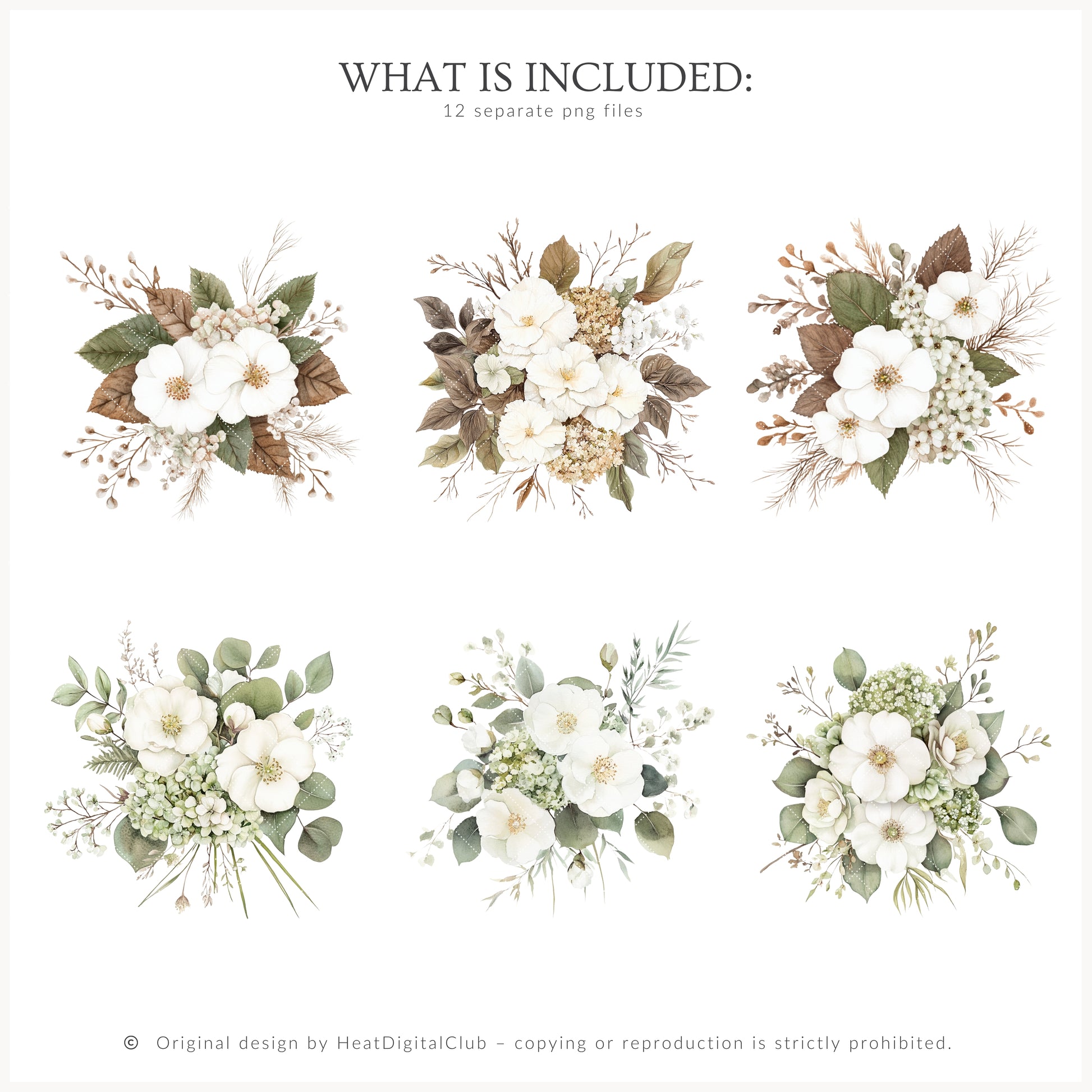 • 12 PNG floral compositions, 300 DPI
