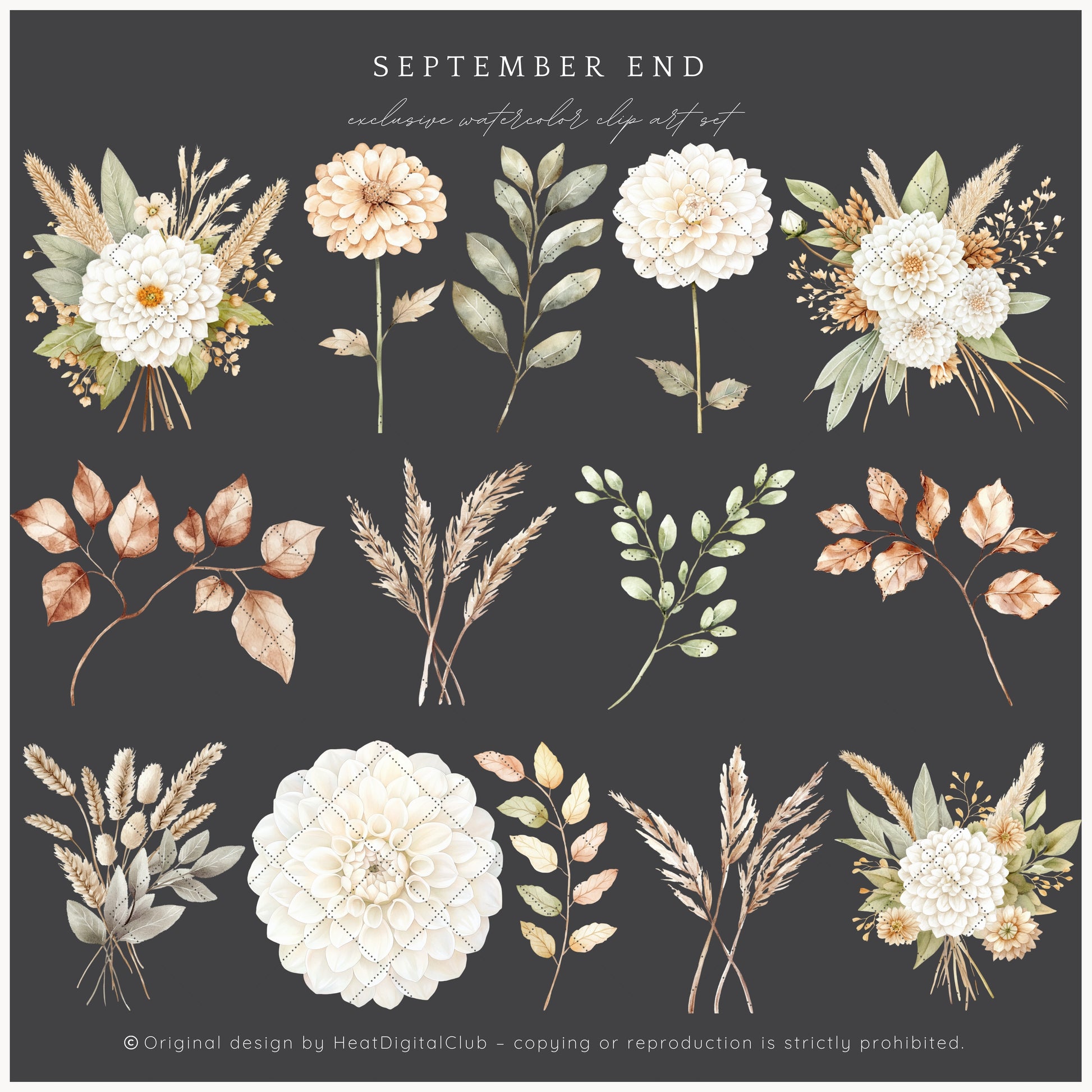 Capture delicate beauty with the September End floral compositions — watercolor bouquets perfect for soft, romantic projects.