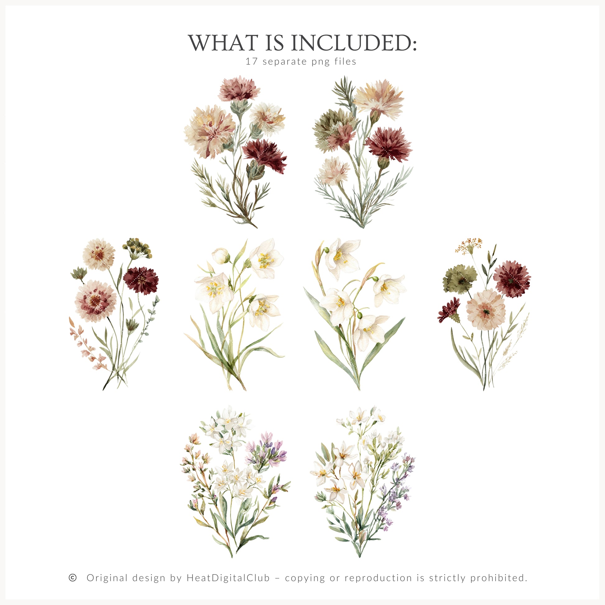 Spring Journey - Floral Arrangements Clipart, Botanical, Elegant English Spring Flowers, Soft Wildflowers | 17 PNG