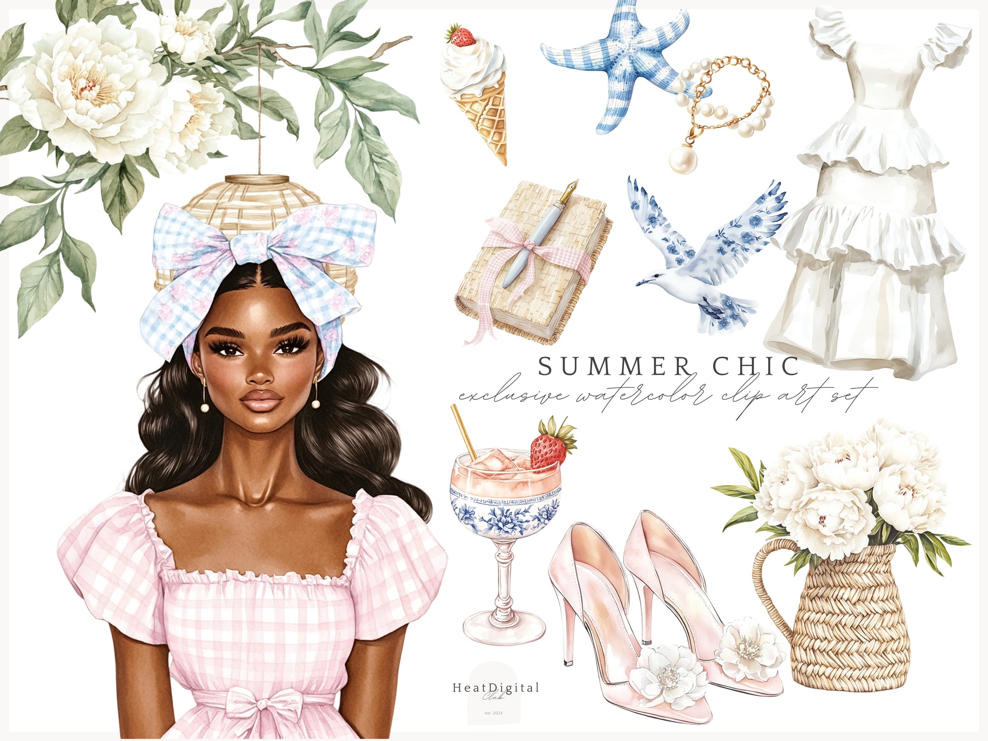 Bring your story to life with the Summer Chic clipart set — a curated selection of watercolor illustrations designed for creative freedom and visual charm. Perfect for everything from branding to paper goods.
