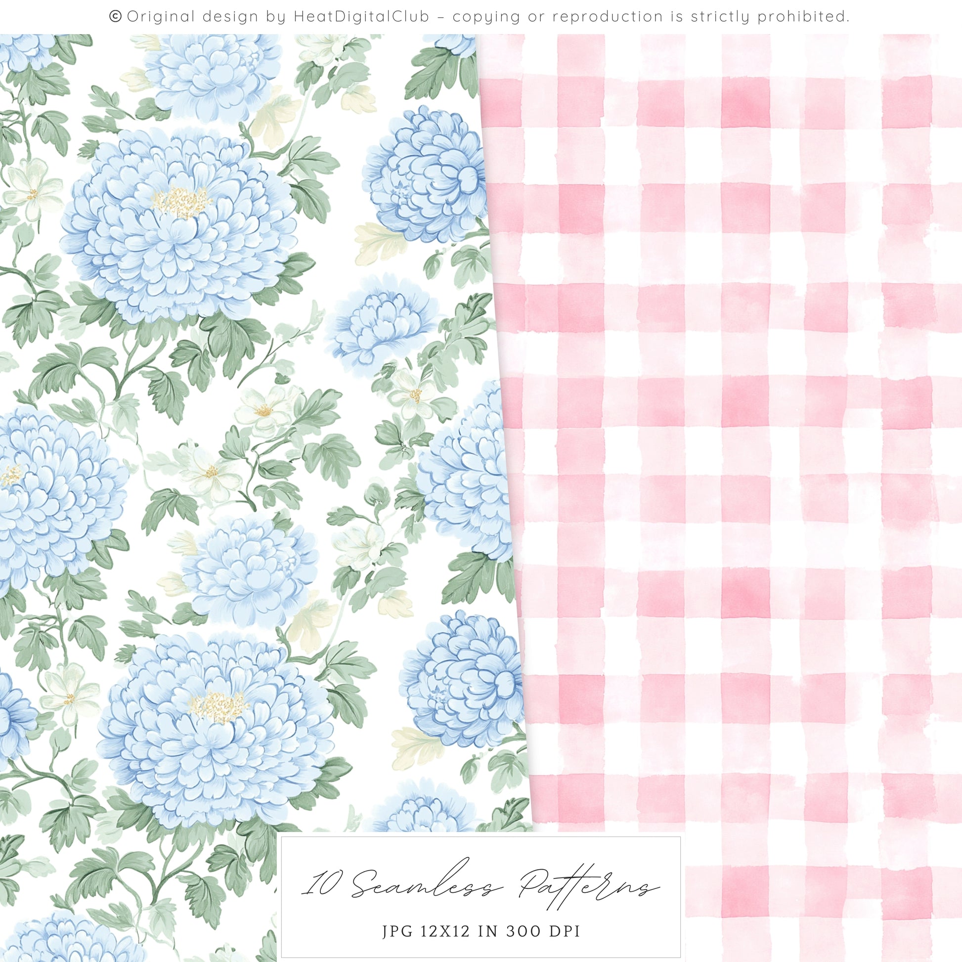 Summer Chic – Seamless Patterns,Gingham, Grandmillennial Florals | 10 JPEG
