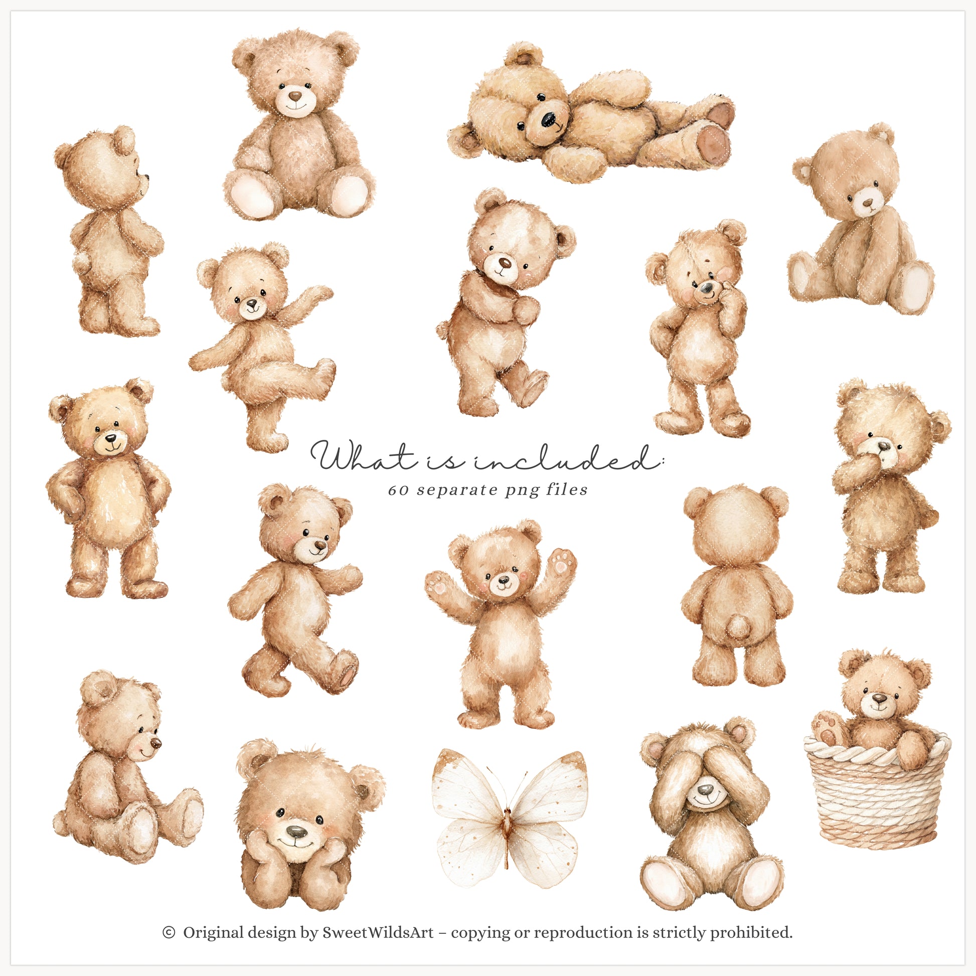 Sweet Classics - Teddy Bear Clipart, Pastel Birthday Bears Toys, Cute Baby Animals, Sweet Nursery | 60 PNG