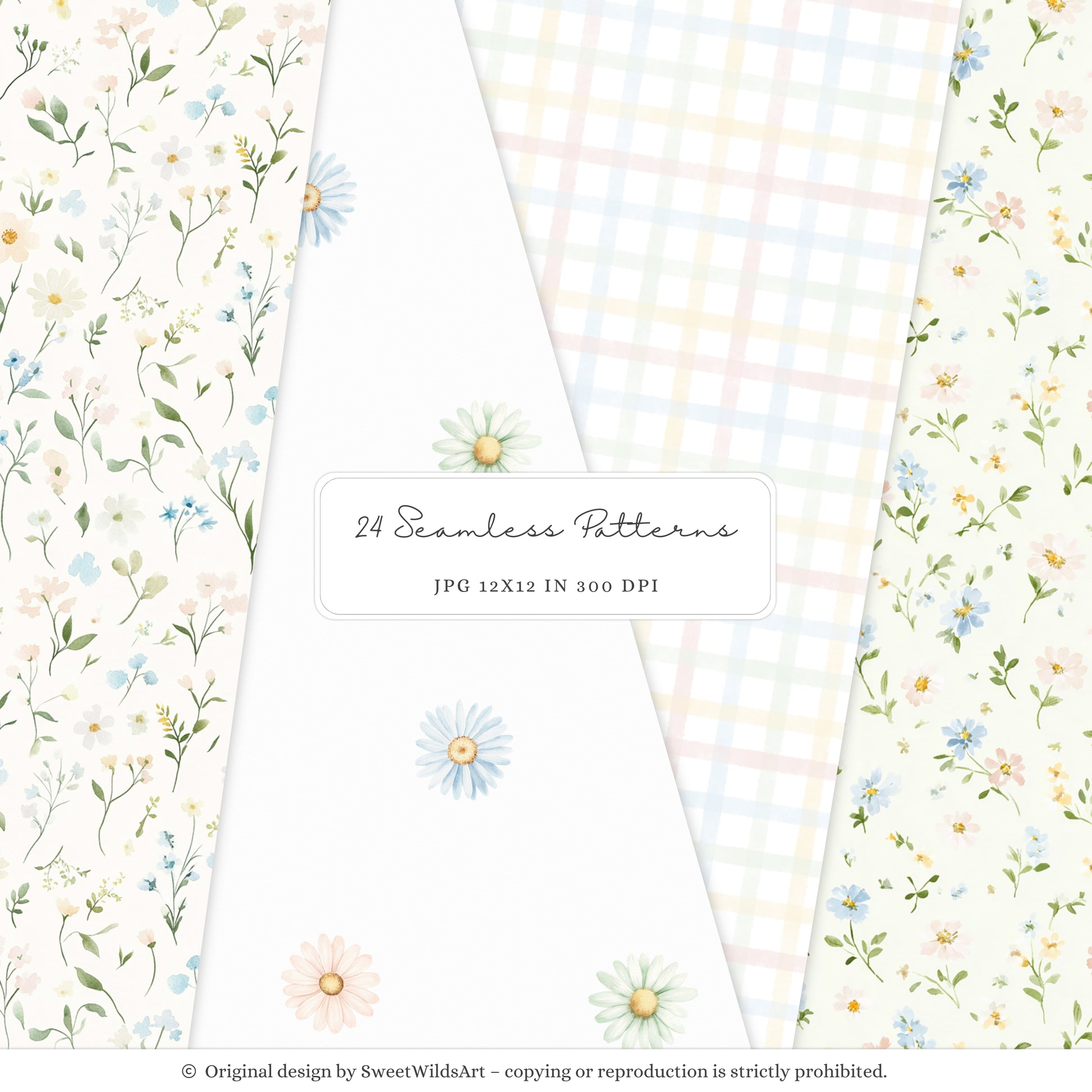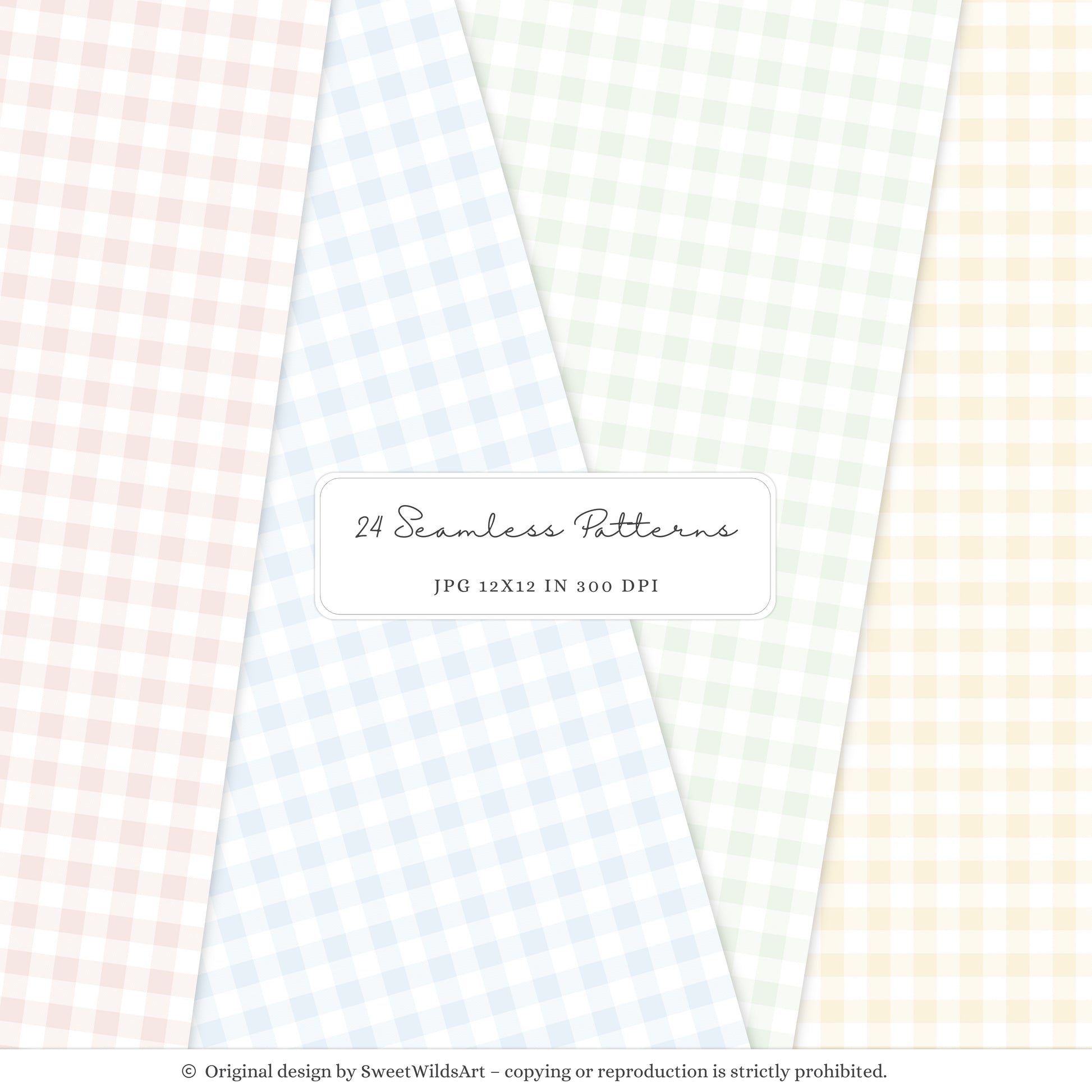 Sweet Classics - Seamless Patterns, Pastel Gingham, Floral Scrapbook Paper, Baby Nursery | 24 JPEG