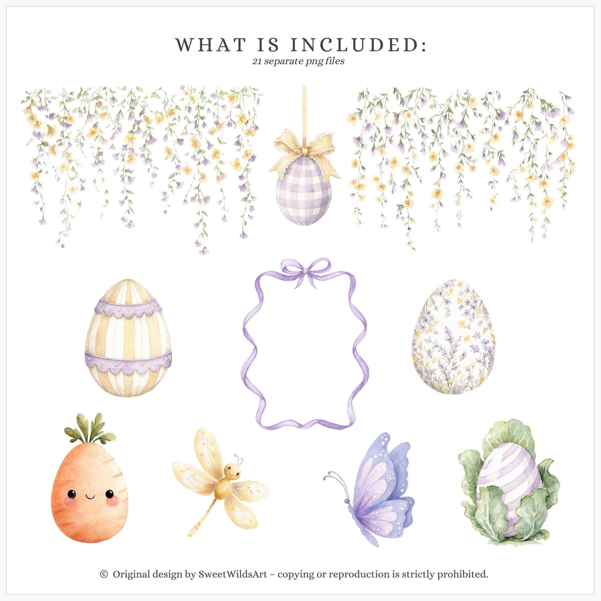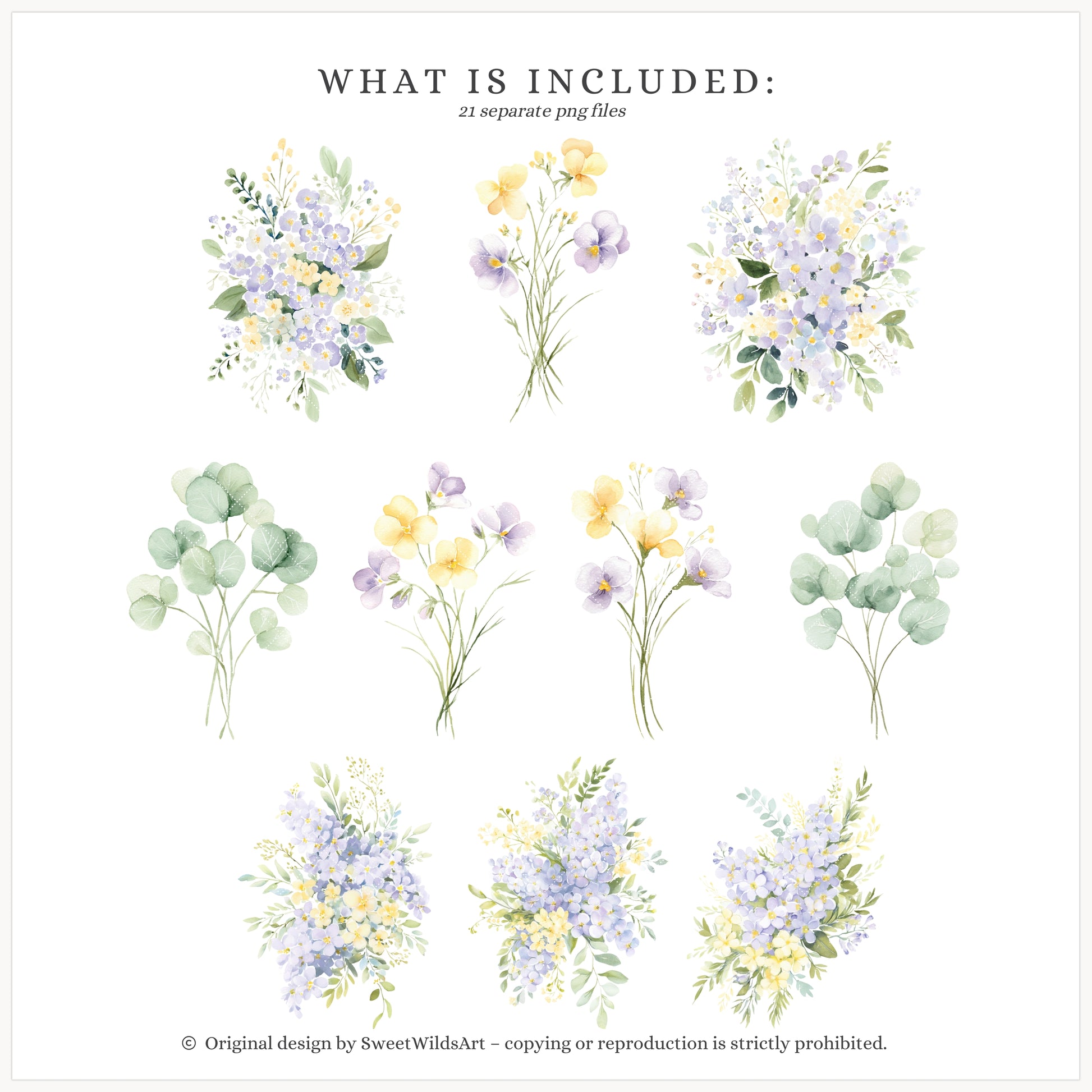 Sweet Easter - Floral Compositions Clipart, Lavender Yellow Blooms, Spring Florals, Cottage | 21 PNG