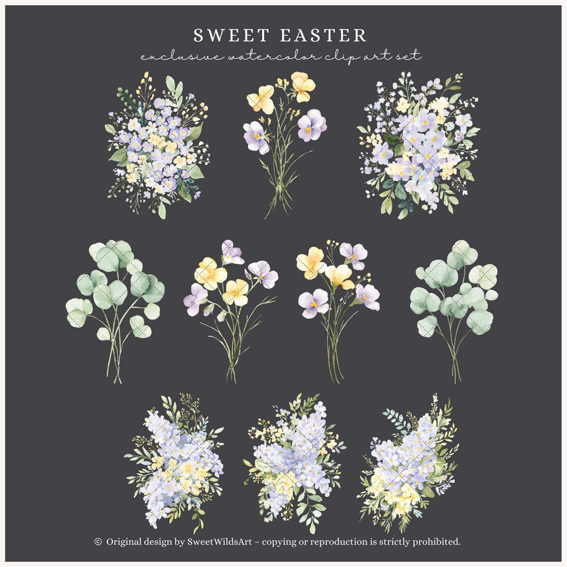 Capture delicate beauty with the Sweet Easter floral compositions — watercolor bouquets perfect for soft, romantic projects.